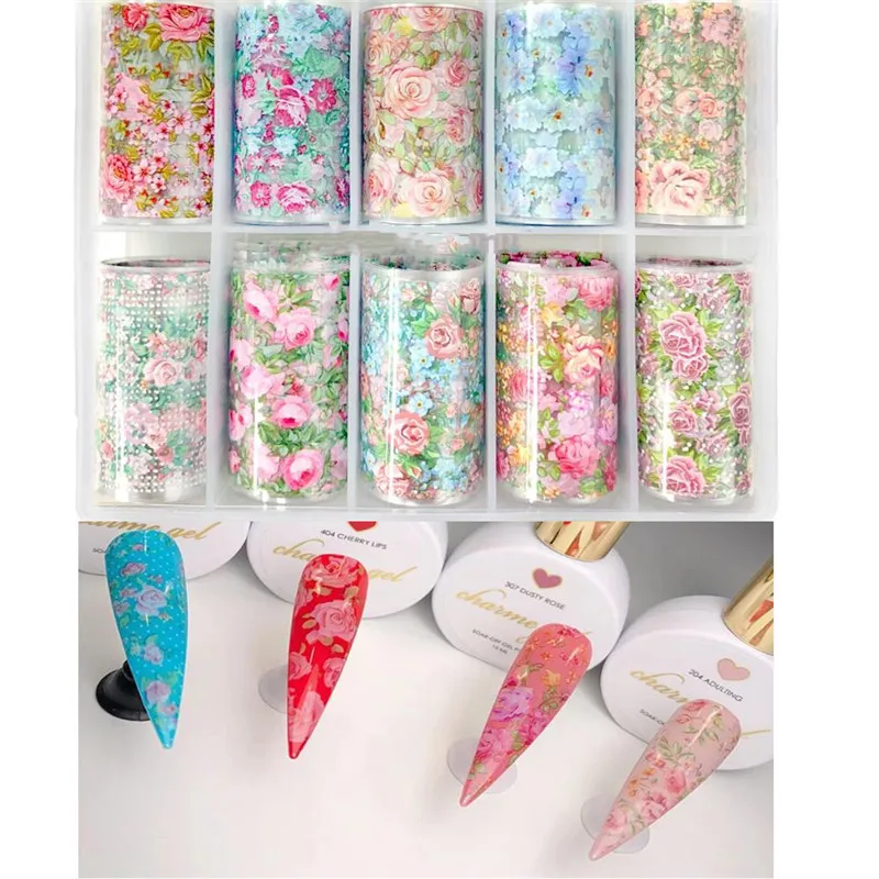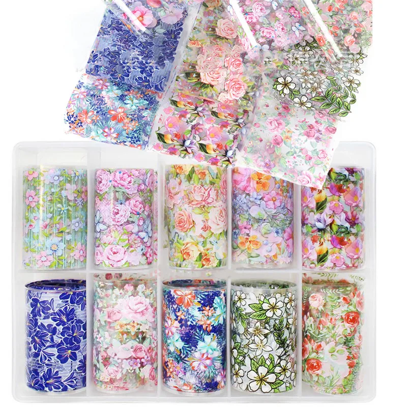 1 set Holographic Nail Foil Multi-pettern Transparent AB Color Nail Transfer Sticker Decals For Nail Foil Set NZ07.8.9