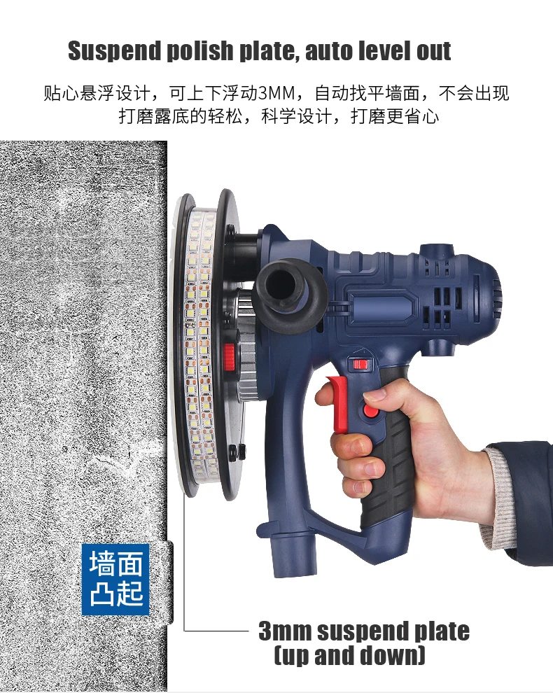 Электрический светодиодный шлифовальщик стен шпатлевка шлифовальный станок 220 В шлифовальный станок настенная гладкость строительство