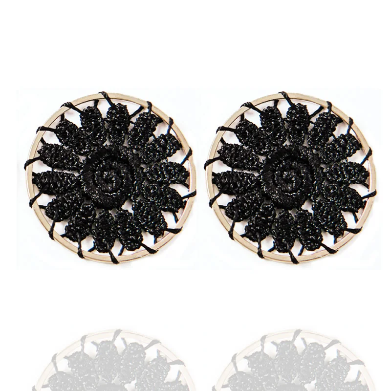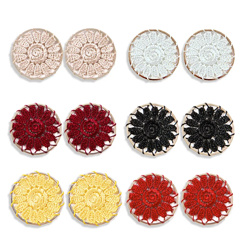 6 шт./лот, серьги в сеточку с цветами, фурнитура для рукоделия, серьги для изготовления ювелирных изделий, круг, полый, полиэфирная пряжа, очаровательные серьги в стиле бохо, соединитель