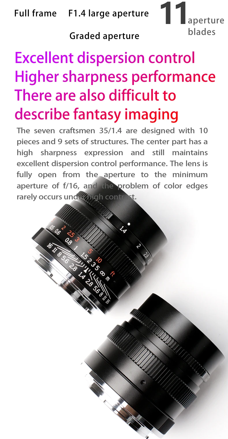 7 ремесленников 35 мм F1.4 широкоугольный объектив полная Рамка Ручной фокус фиксированный объектив для камер SONY E-mount A7 A7II A7R A7RII A7S A6500