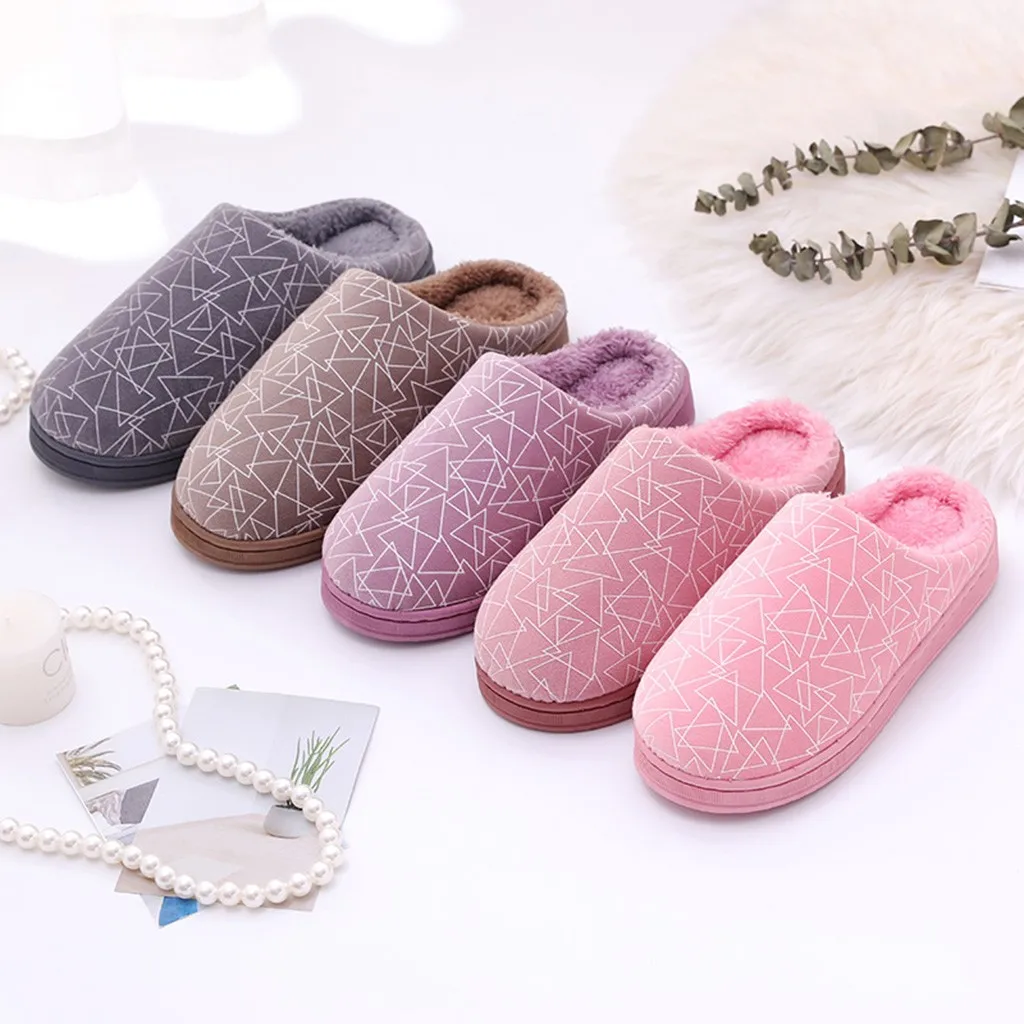 Женские и мужские теплые домашние тапочки из флока с геометрическим рисунком; Домашняя обувь