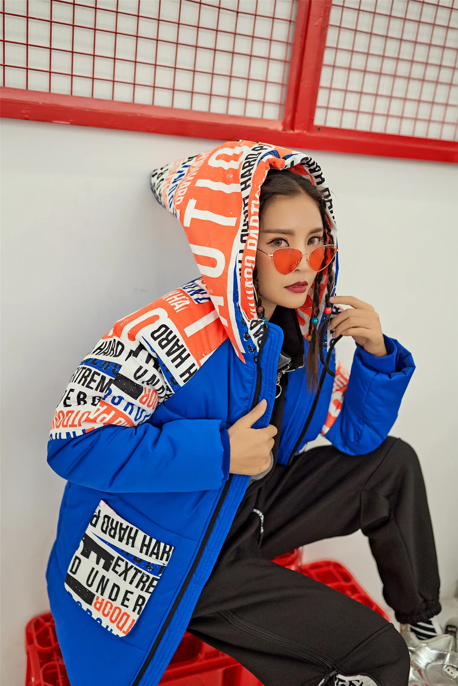 Новое поступление 2020, уличная одежда с капюшоном и модным принтом, пальто для женщин, зимняя теплая верхняя одежда в стиле Харадзюку, хип-хоп, большие размеры, парки на молнии, Толстая куртка, пальто, цветное, с карманами