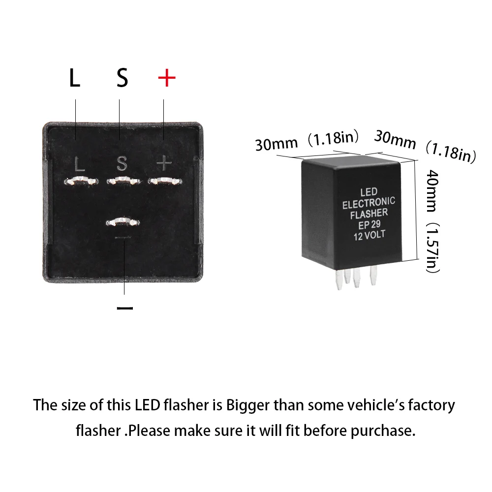 Светодиодный мигалка не заменяет все реле мигалки. Перед тем как сделать заказ, пожалуйста, убедитесь в том, что 4-контактный конфигурация такая же, как и вашего автомобиля. Вы обычно можете найти свой штырь flasher напечатанный прямо на вашем flasher. Отказ проверить это и установка в несовместимом транспортном средстве может взорвать ваш предохранитель, разрушить мигалку и аннулировать защиту мигалки.