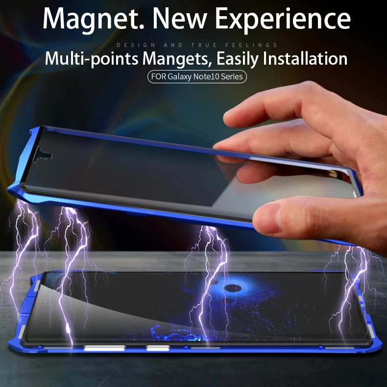 ★Совместим только с samsung Galaxy Note 10 + Plus 6,8 дюйма (2019). Технология магнитной адсорбции, многоточечная и сильная технология адсорбции магнитного поля делают ваш телефон выделяться среди толпы. ★Полная защита корпуса: тонкая ультраметаллическая рамка с передним закаленным стеклом и прозрачным стеклом сзади, чтобы предложить комплексную защиту, больше не нужно покупать протектор экрана, поддержка беспроводной зарядки ★Металлическая рамка с полным корпусом из закаленного стекла: рамка корпуса полностью обернута алюминиевым сплавом, который ударопрочный может защитить ваш телефон как можно больше. Передняя часть встроена 9 H протектор экрана из закаленного стекла. ★Точные вырезы и отличное касание: Чувствительность облегчает доступ ко всем портам, динамикам, зарядным устройствам и всем функциям телефона. Позвольте вам прикасаться к телефону, как к оригинальному телефону. ★Устойчивость к царапинам: усиленное закаленное стекло не легко трескается и достаточно жестко, чтобы выдерживать царапины и потертости повседневной жизни, ударопрочный металлический каркас безопасности обеспечивает более прочную защиту от резкого падения.