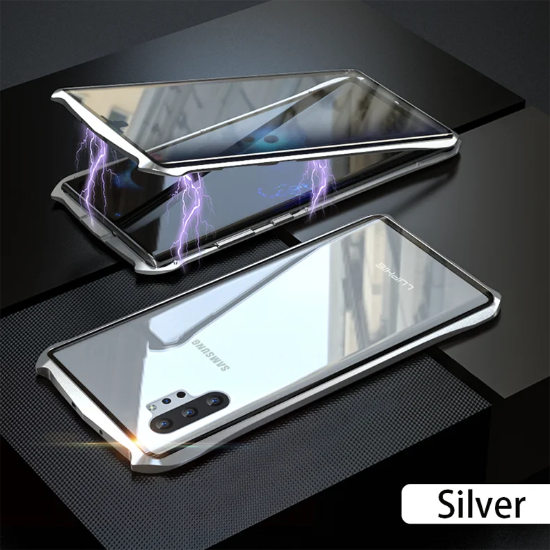 LUPHIE Магнитный адсорбционный чехол для samsung Galaxy Note 10 Plus металлический бампер прозрачная двойная лента-стекло в рамке чехол для samsung Note 10 +