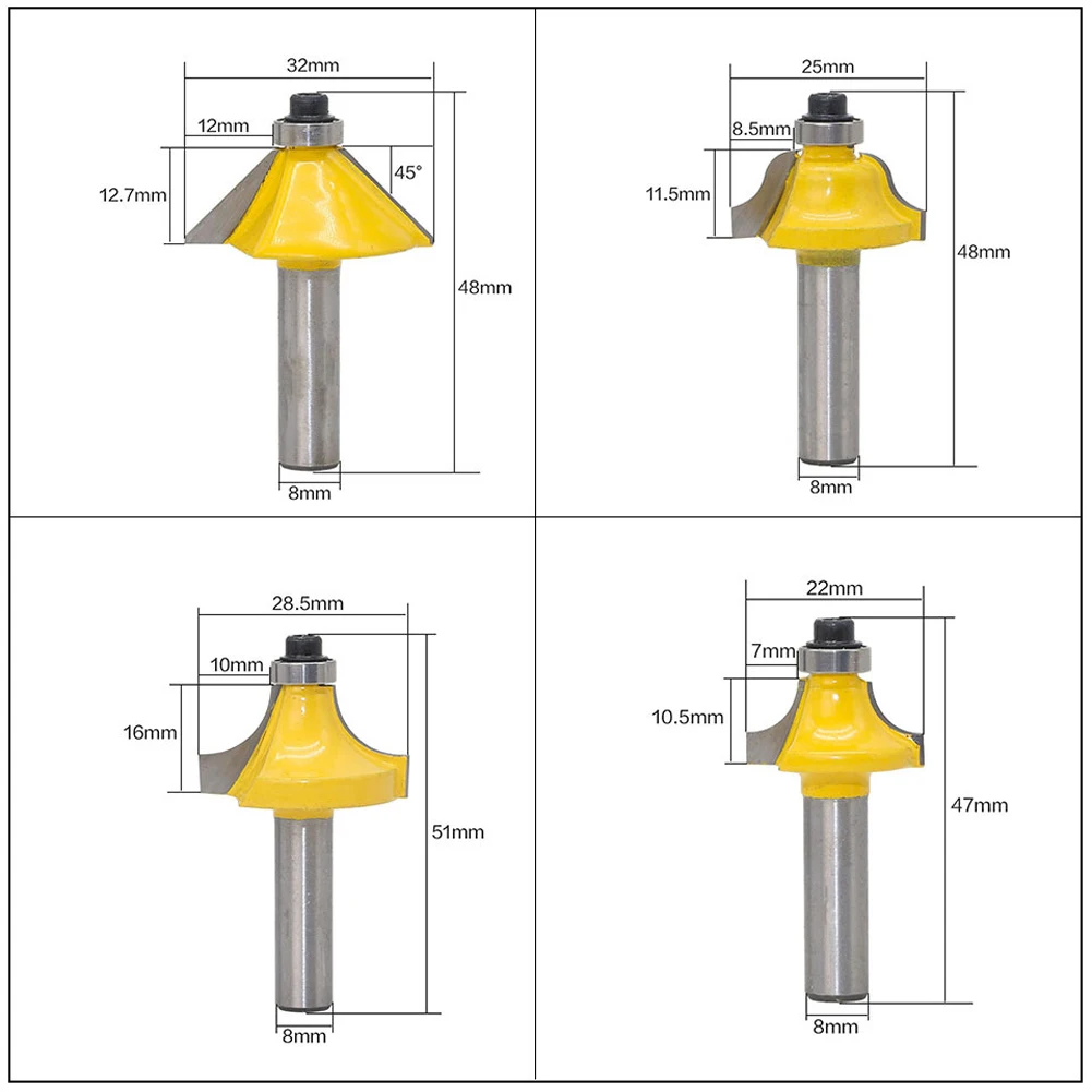 12 шт. фреза Маршрутизатор Набор бит 8 мм резак для дерева карбидный хвостовик мельница Деревообработка Обрезка Гравировка режущие инструменты B4