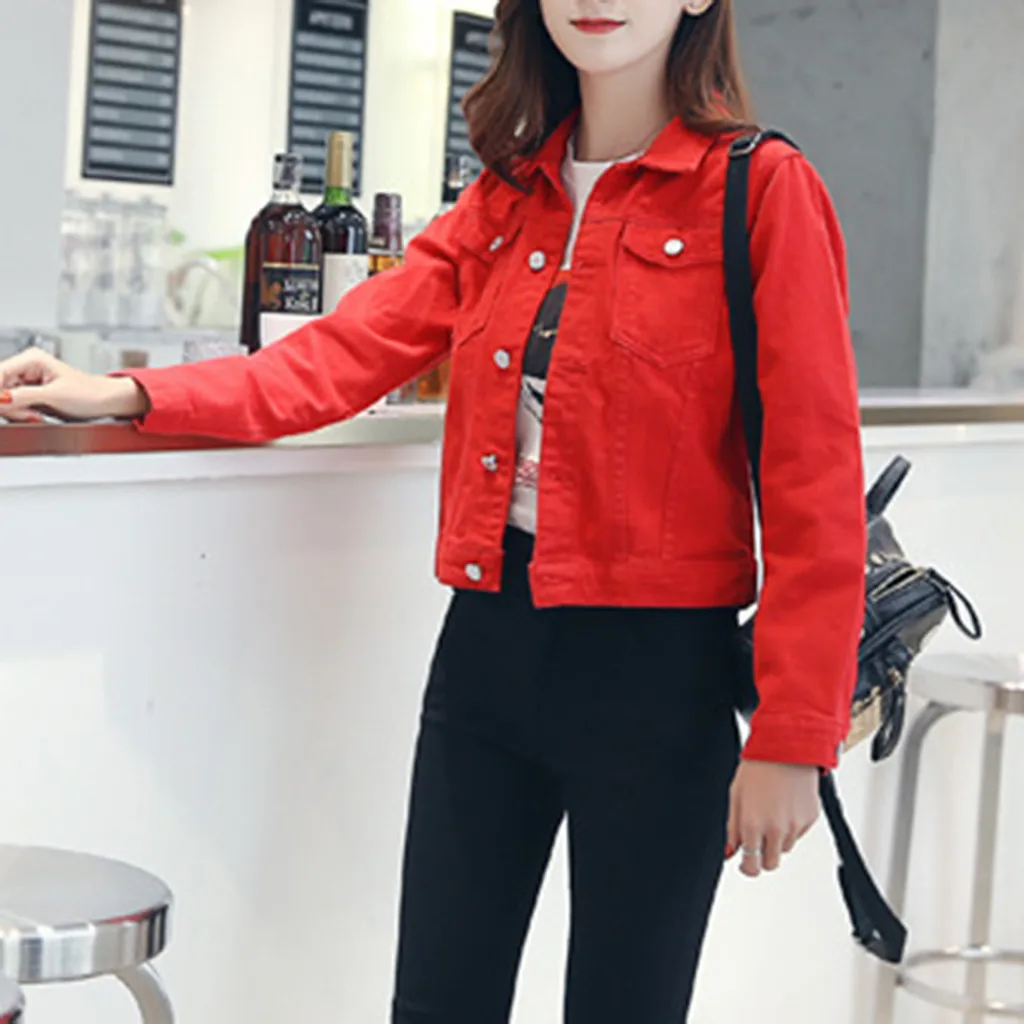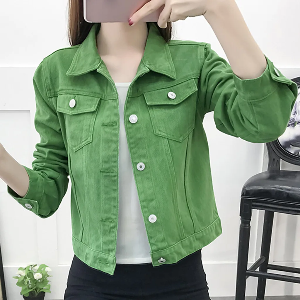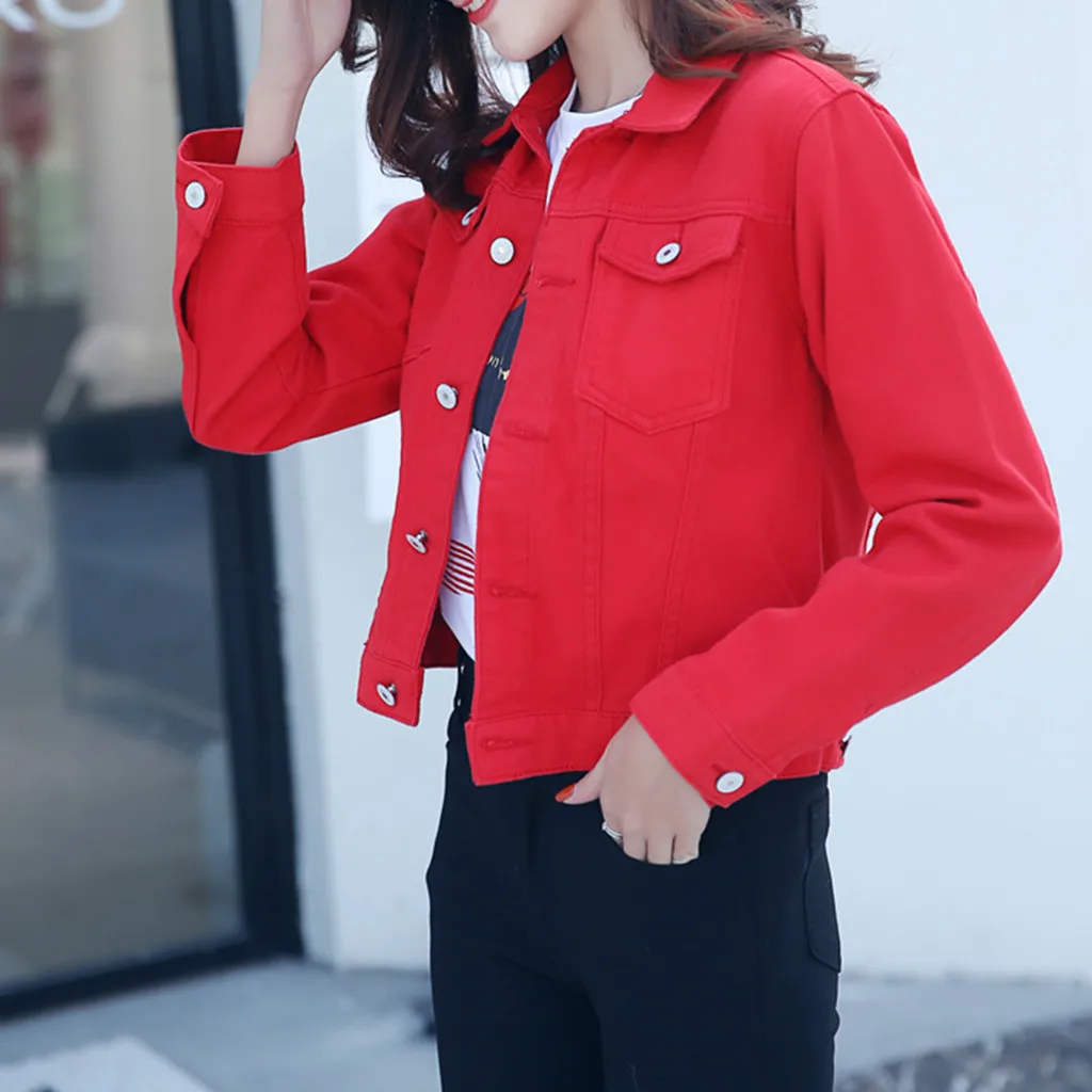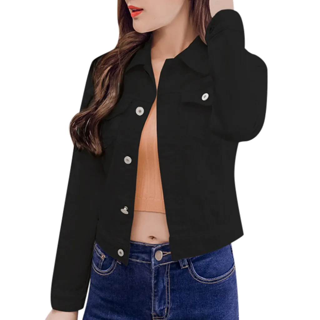 Женская мода нагрудные Твердые повседневные джинсовые пуговицы Блейзер джинсовая куртка кардиган