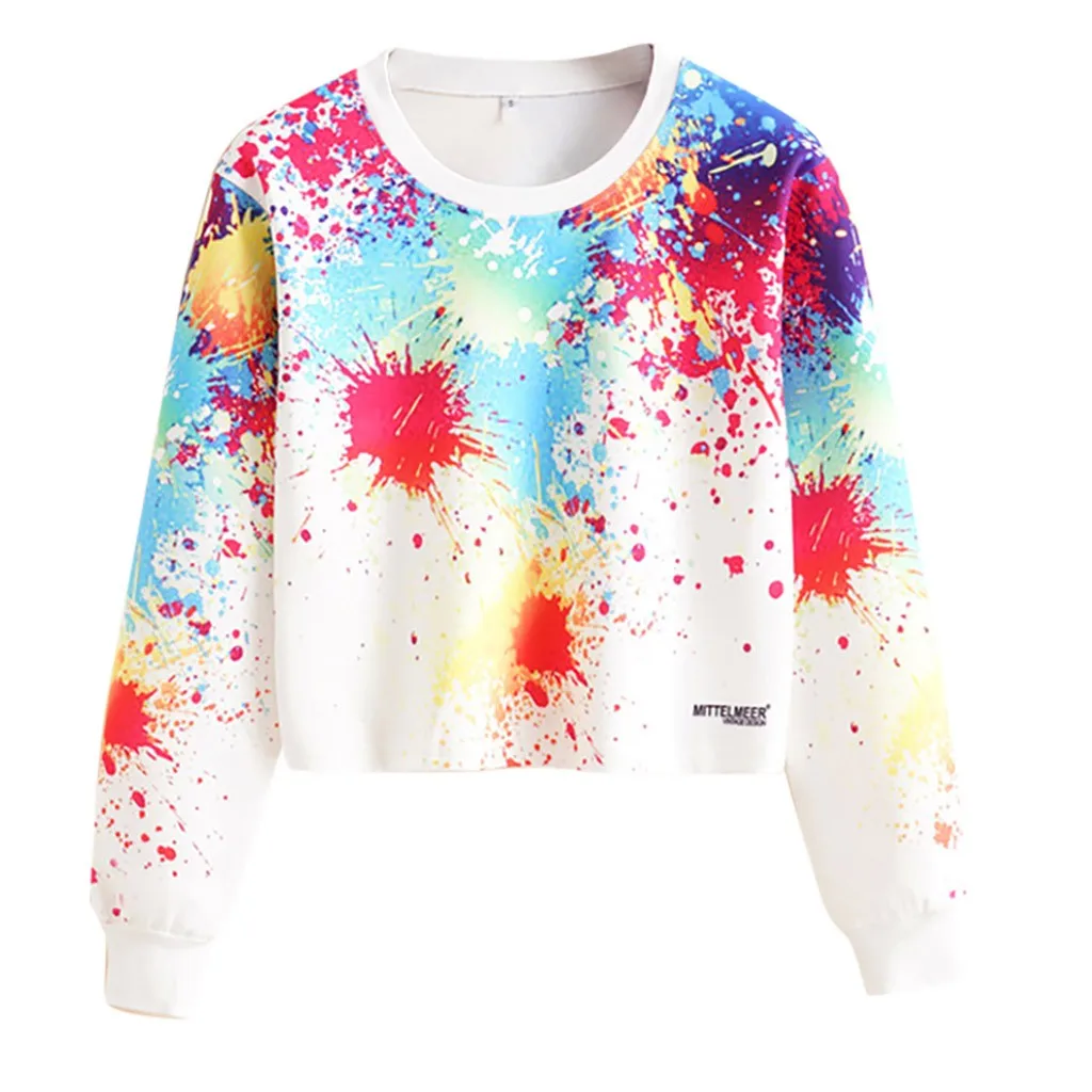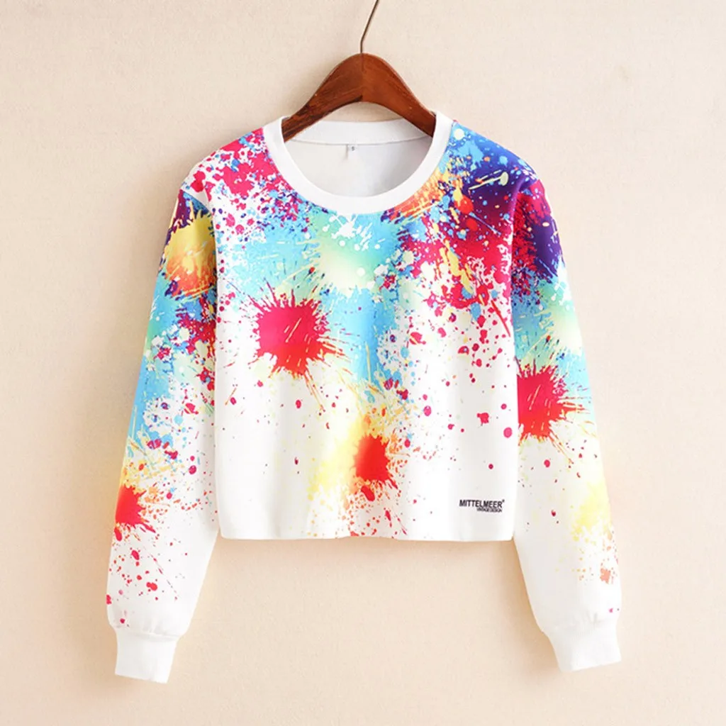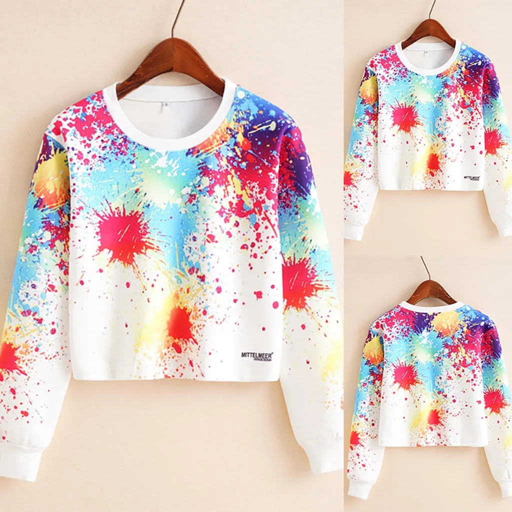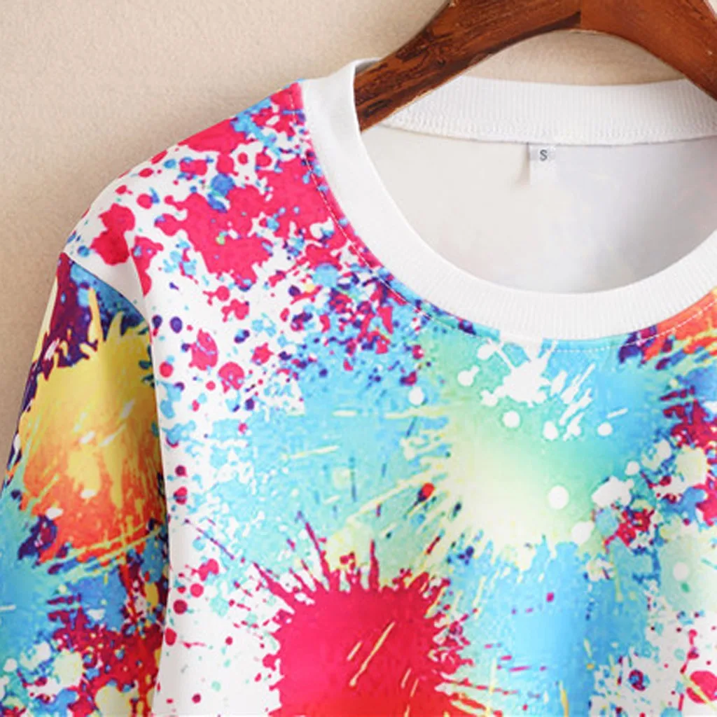 Женская мода Повседневная Свободная О-образным вырезом галстук окрашенная с длинным рукавом Толстовка