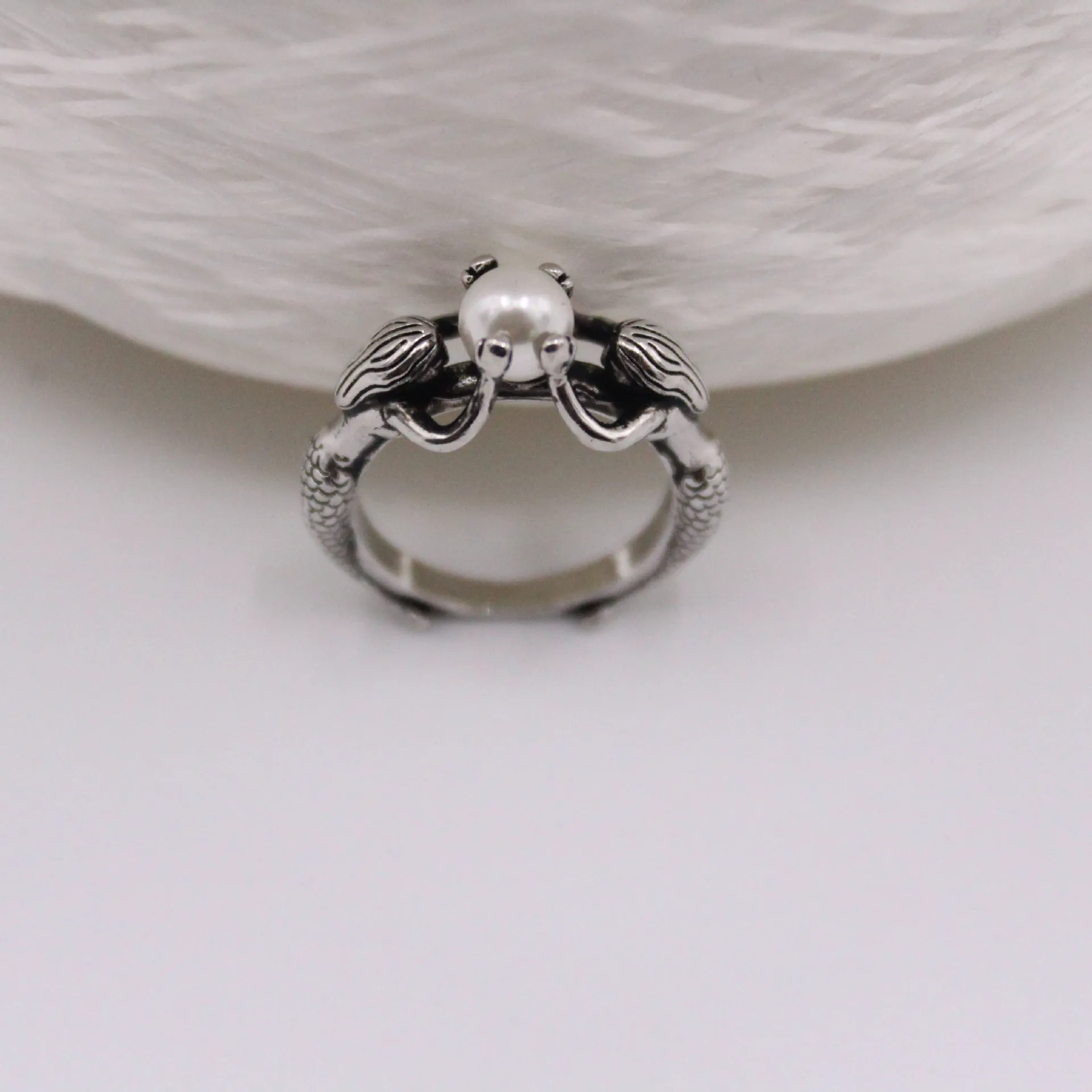 Новое поступление, креативные античные серебряные цвета, две русалки с жемчужинами, кольца на палец, свадебная Модная бижутерия для помолвки женщин