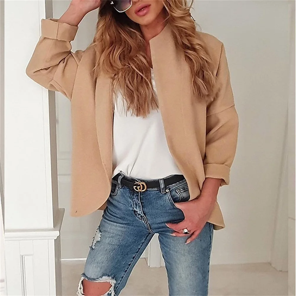 2019 осеннее Новое поступление пальто женское с длинным рукавом нерегулярная повседневная куртка кардиган хаки серый цвета женские блейзеры