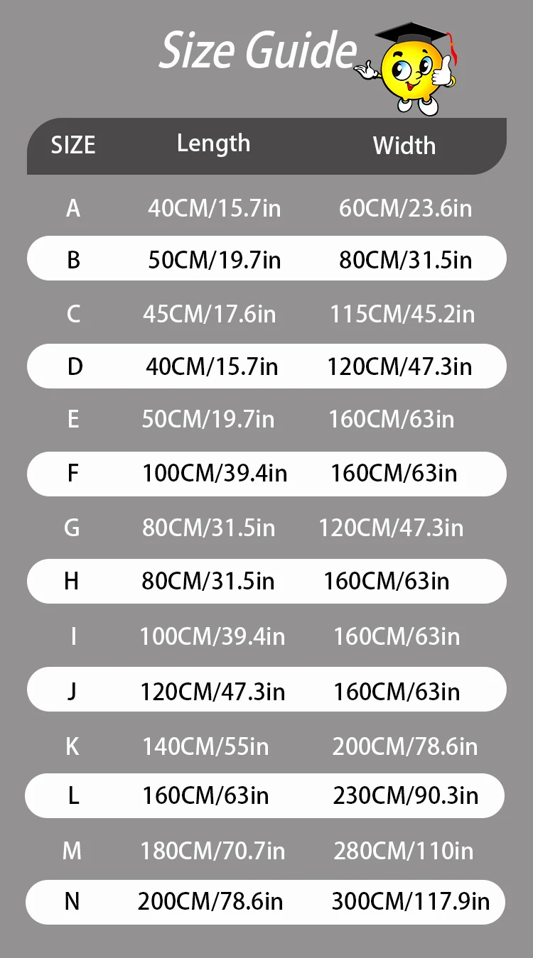 Таблица размеров предназначена только для справки. Для конкретного размера ковра по ссылке, Пожалуйста, разместите заказ в соответствии с имеющимися вариантами. Если вам нужно настроить размер, пожалуйста, свяжитесь со службой поддержки клиентов.