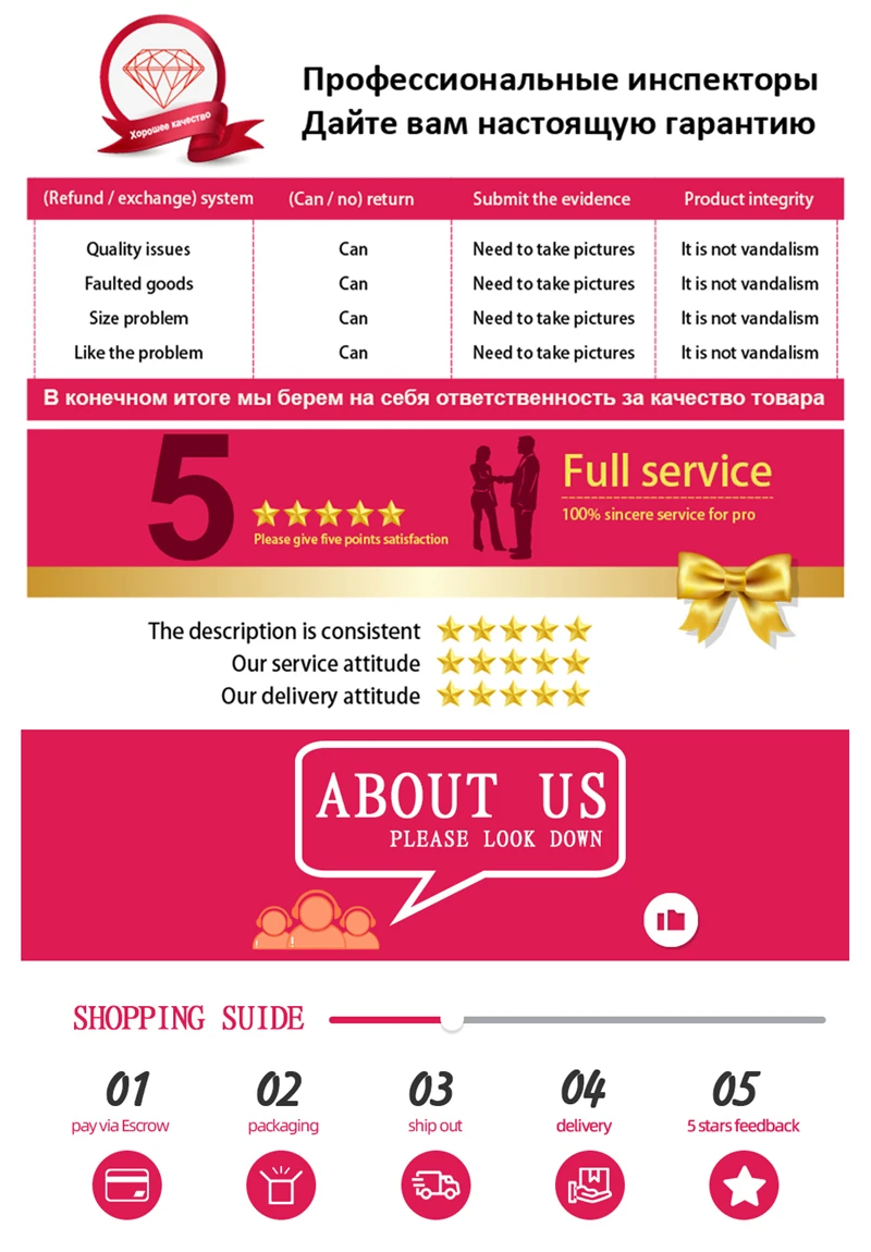Ответ: если покупатель возвращает товар в течение 15 дней после получения товара по какой-либо причине, мы вернем покупателю деньги. Однако покупатель должен оплатить стоимость обратной доставки и убедиться, что возвращенный товар остается в первоначальном состоянии.