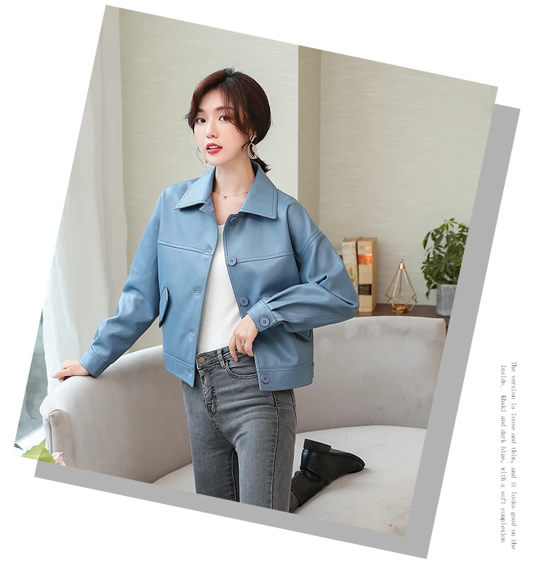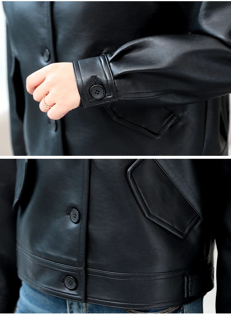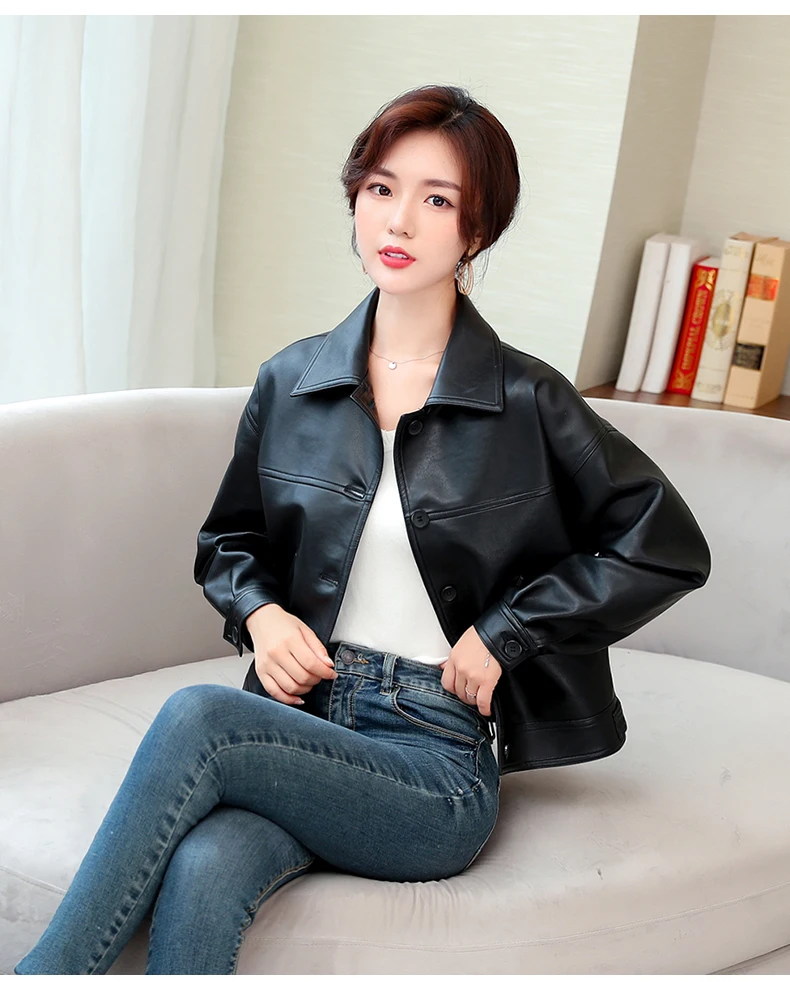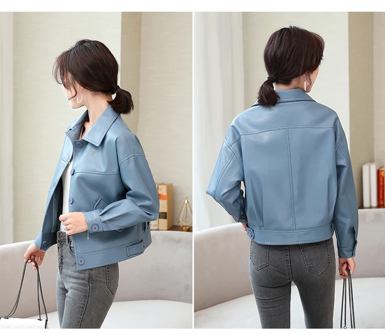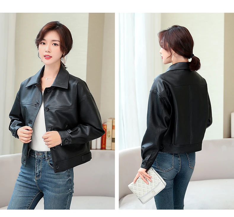 Куртка женская короткая из ПУ кожи с заклепками на молнии|Кожаные куртки| |
