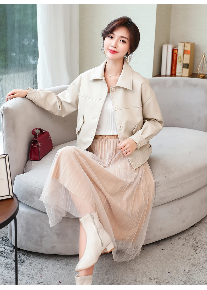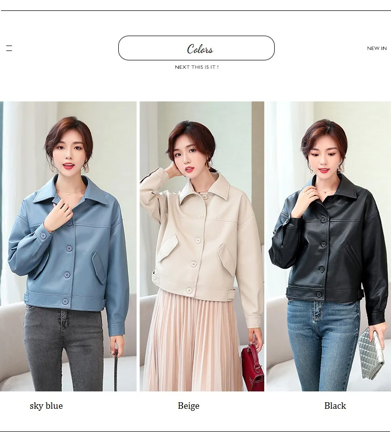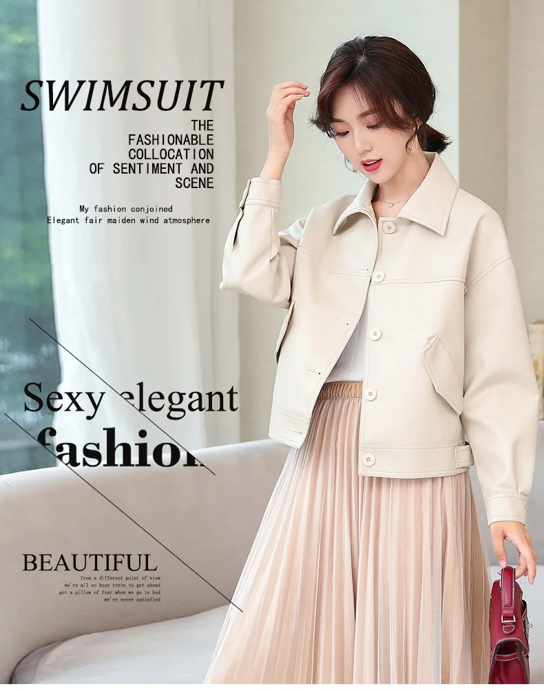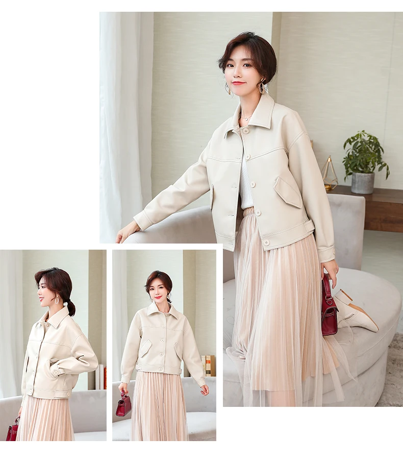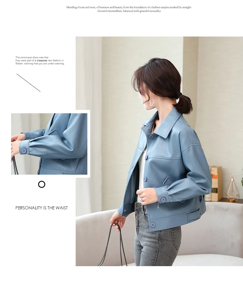 Куртка женская короткая из ПУ кожи с заклепками на молнии|Кожаные куртки| |