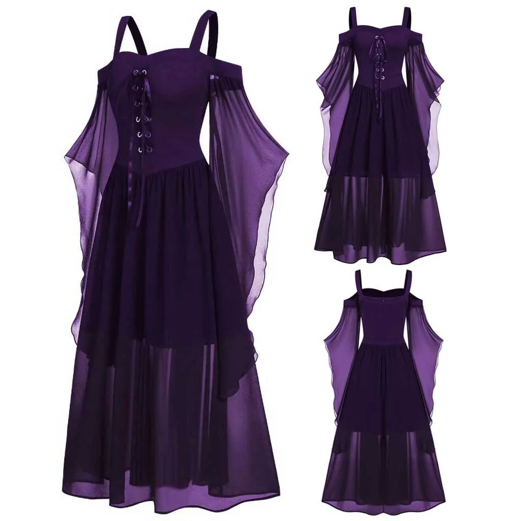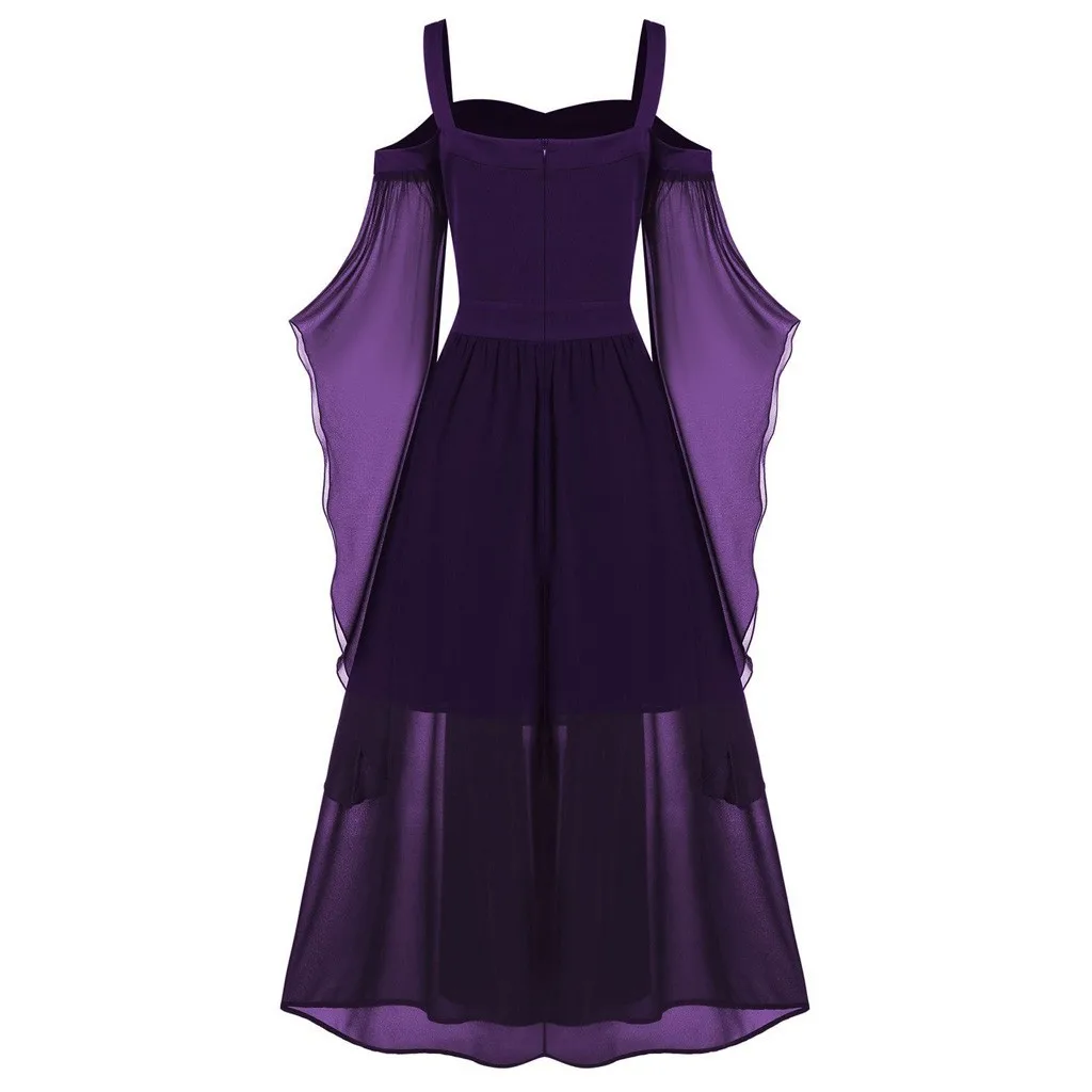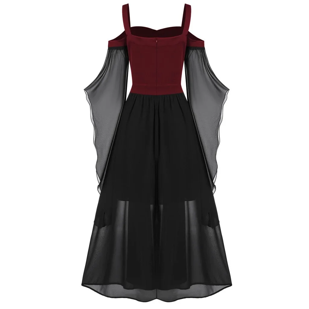 Модное разноцветное женское платье большого размера с открытыми плечами и рукавами-бабочками на Хэллоуин готическое платье vestidos 40 *