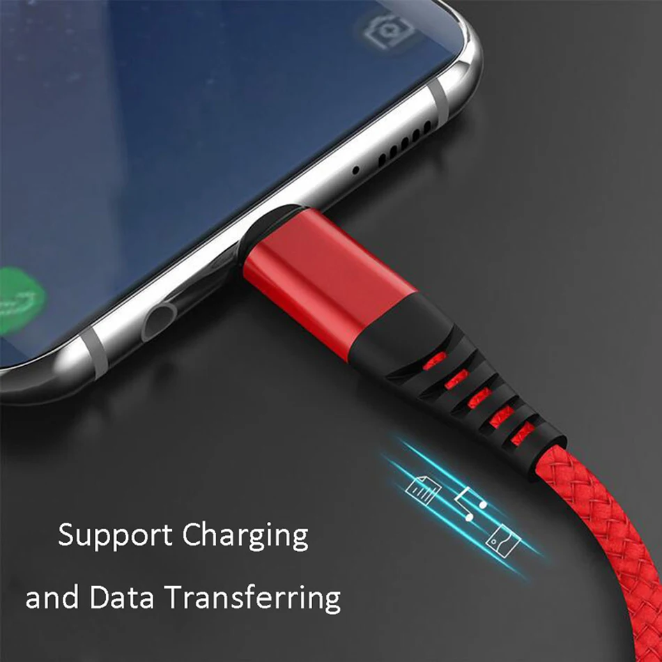 Длина: 1 м Цвет: черный, красный Интерфейс: для micro, для type c, для iphone 8 pin