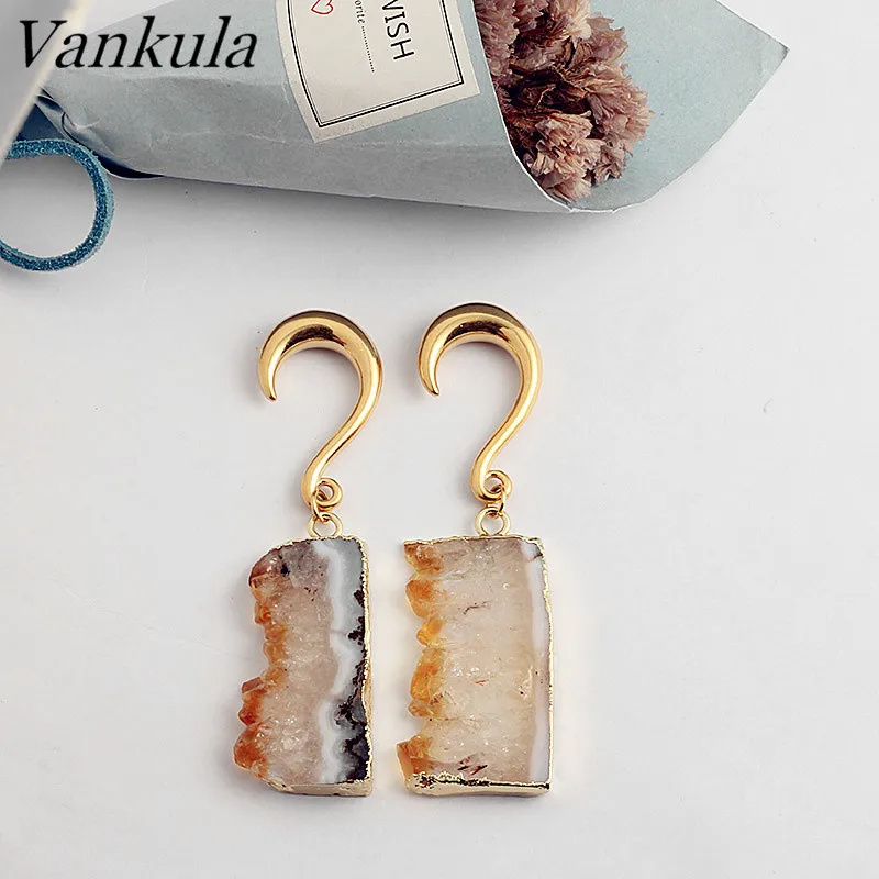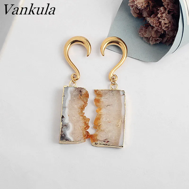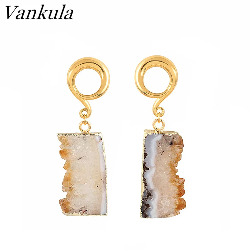 Vankula 316L Нержавеющая сталь уха Вилки и тоннелей новый Sunstone тела пирсинг, ушные измерительные приборы расширитель пара продажи 4 мм 6 мм 8 мм