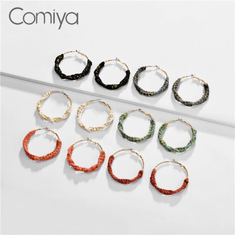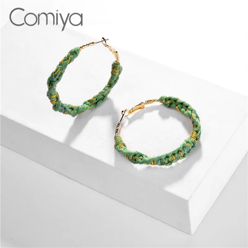 Comiya корейские Висячие серьги Золотой цветной цинк сплав Aros Хлопок Веревка серьги ювелирные изделия индийские аксессуары Feminino висячие серьги Диаметр: 5,5 см Вес: 10 г/уп