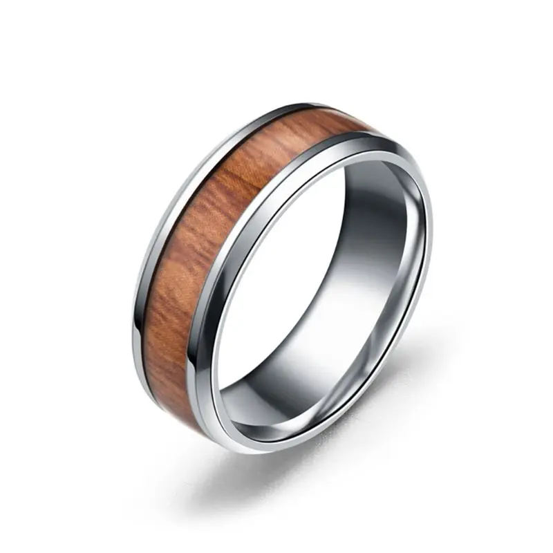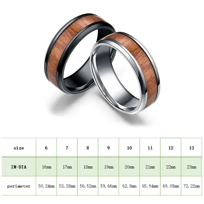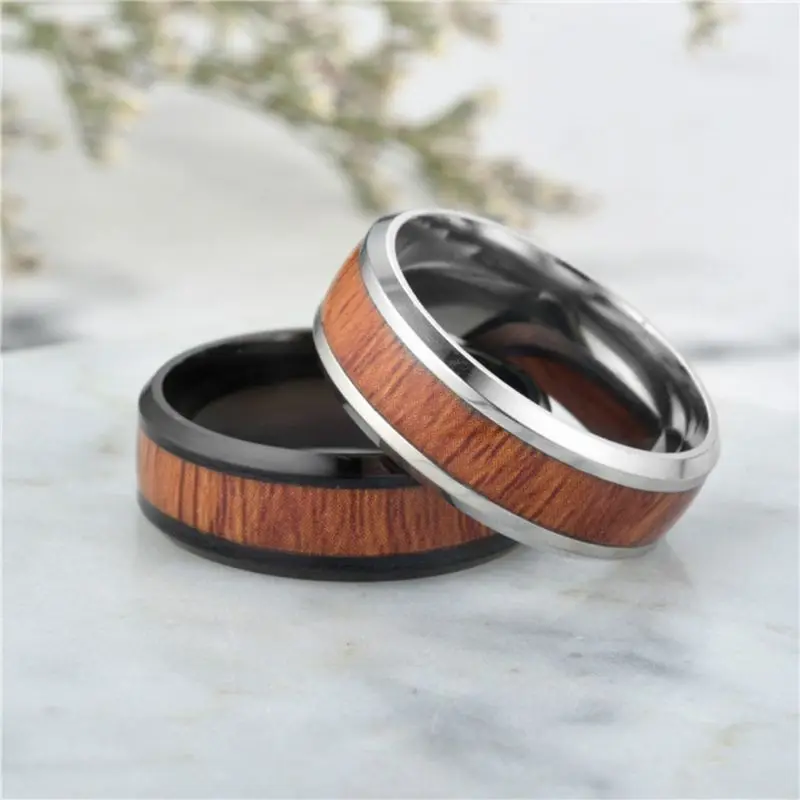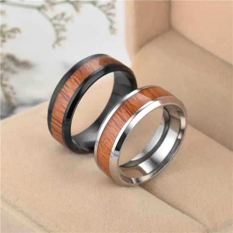 Обручальное кольцо с деревянной инкрустацией из титановой стали для мужчин и женщин, мужское обручальное кольцо с Т-образным ремешком, размер 6-13