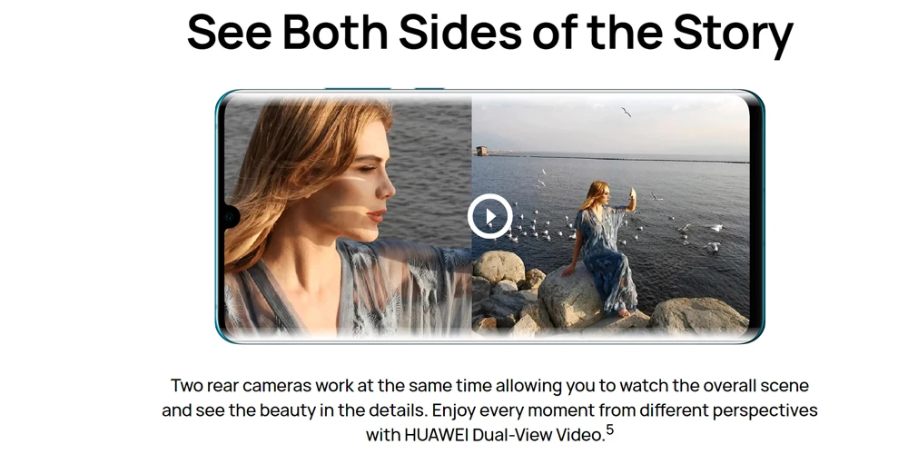Смотрите обе стороны историиДве задние камеры работают одновременно, позволяя вам смотреть общую сцену и видеть красоту в деталях. Наслаждайтесь каждым моментом с разных точек зрения с помощью видео HUAWEI Dual-View.