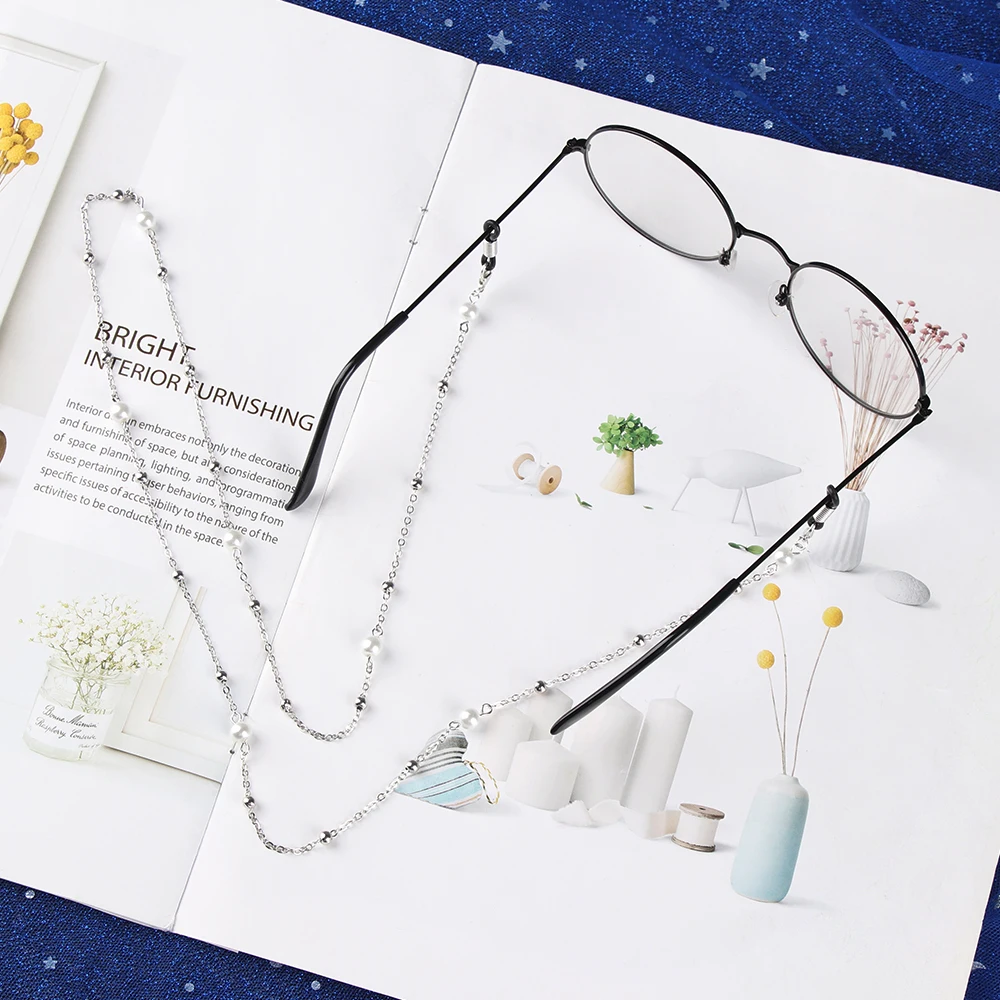 1 шт., женские модные винтажные металлические солнцезащитные очки, цепочка с жемчужными бусинами, очки для чтения, ремешок, очки, ожерелье, аксессуары для глаз