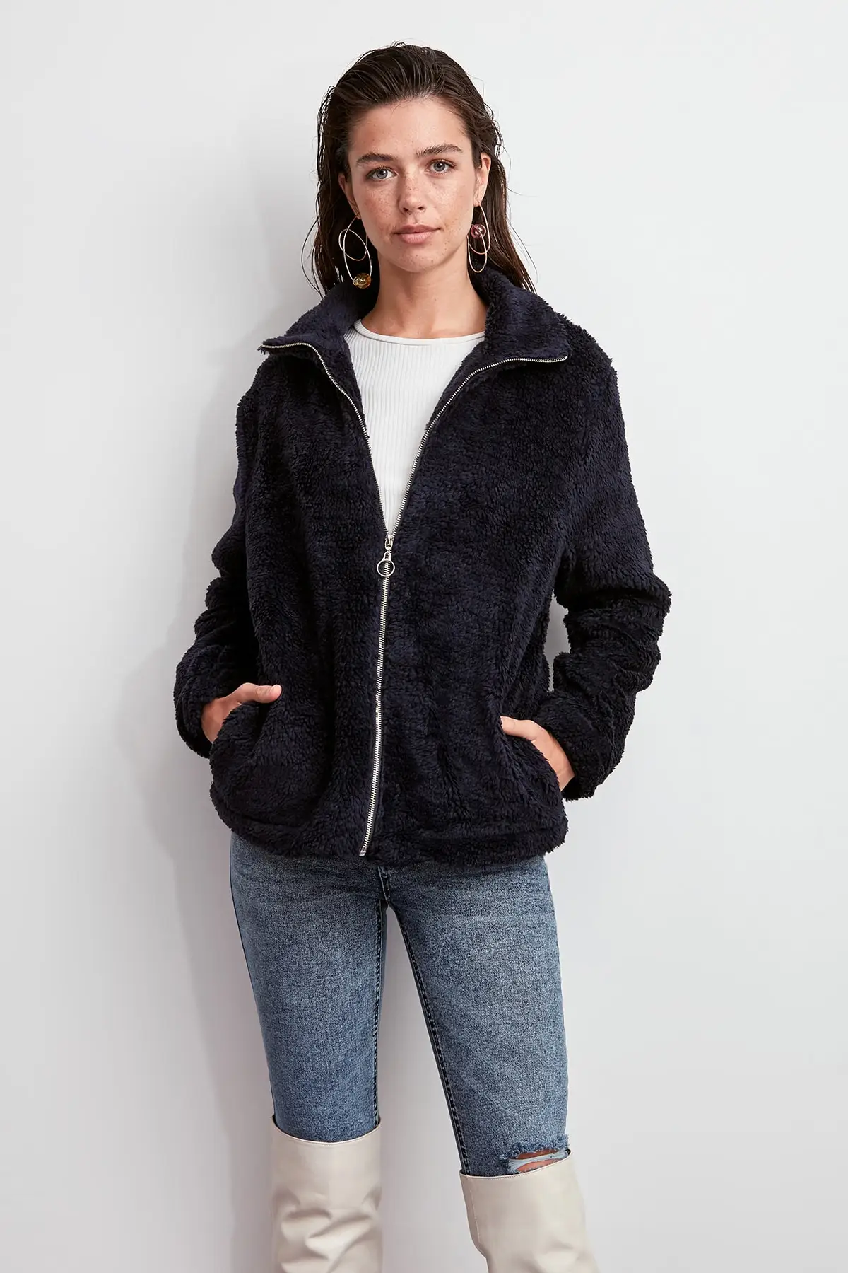 Женское теплое шерстяное пальто с отложным воротником повседневное приталенное
