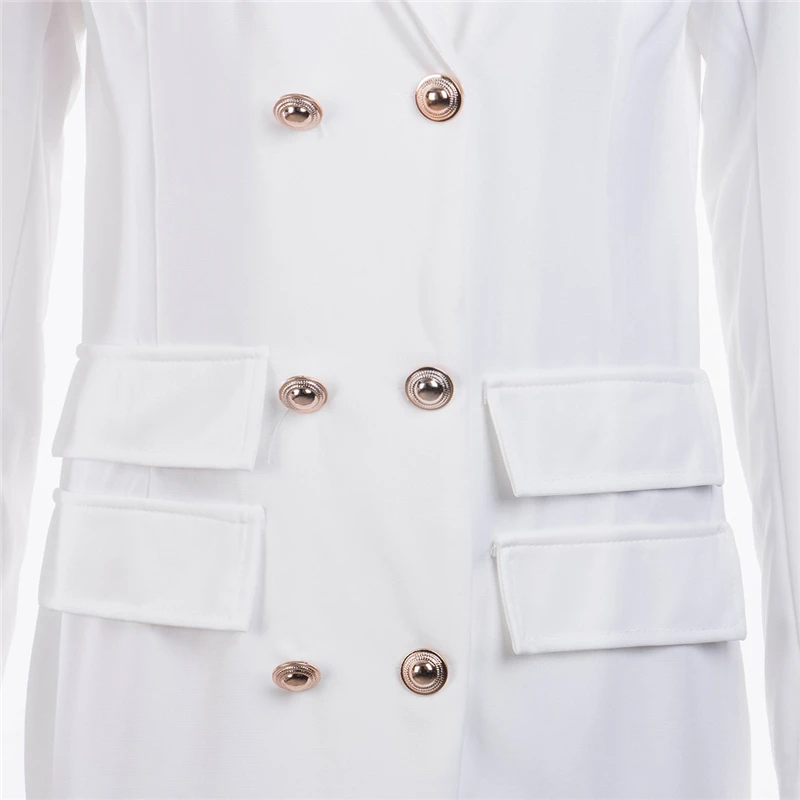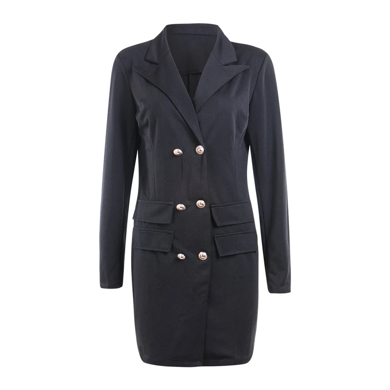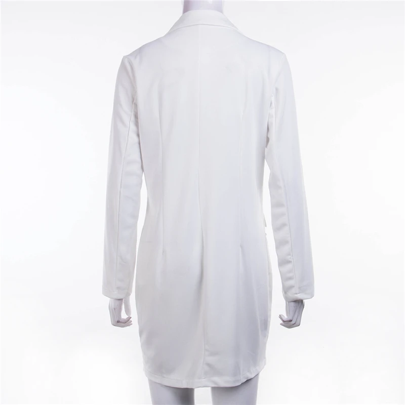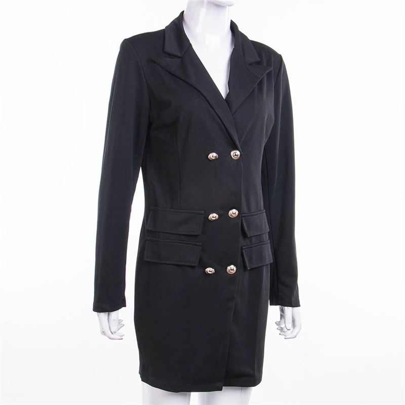 Осенне-зимний костюм Блейзер Женский Новый Повседневный двубортный карман женские длинные куртки элегантный блейзер с длинными рукавами пальто