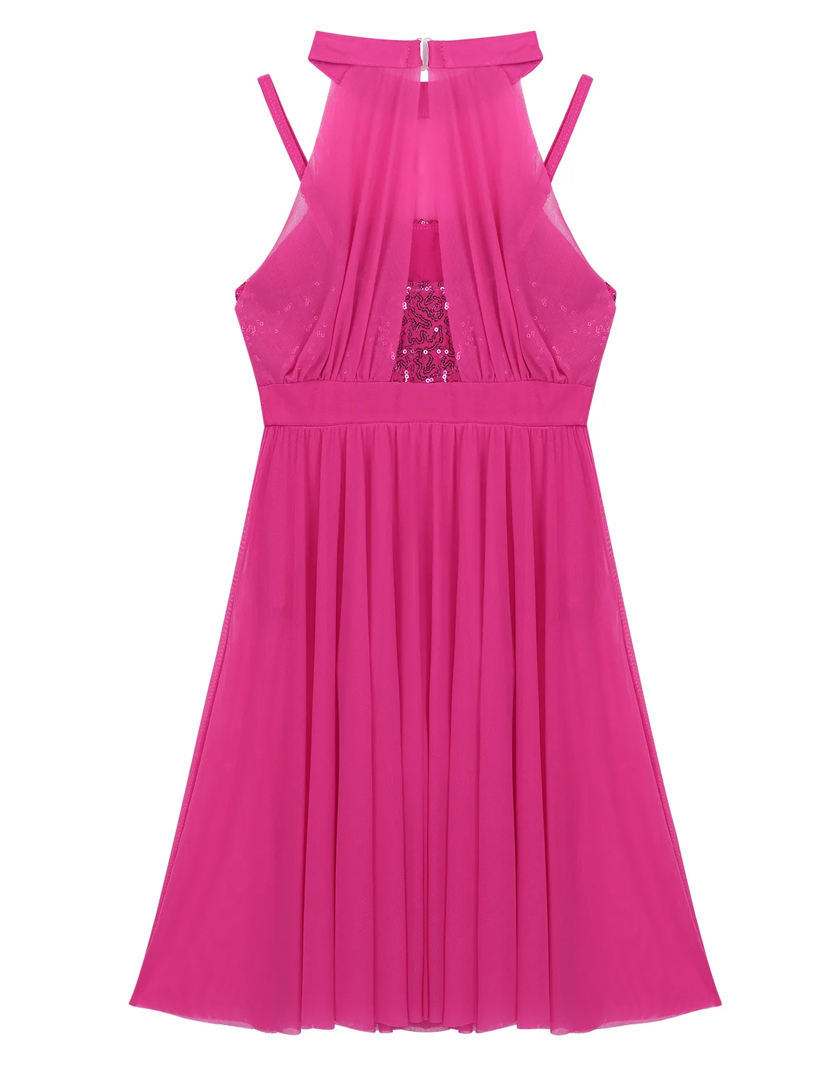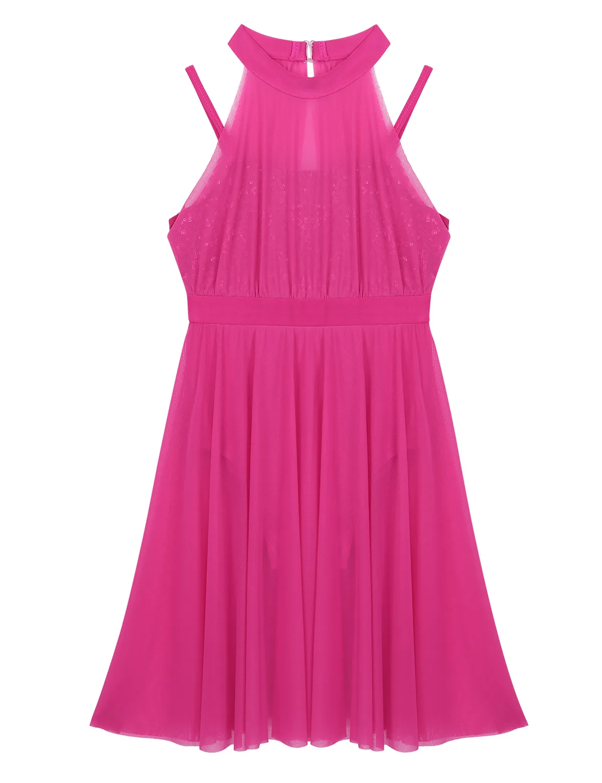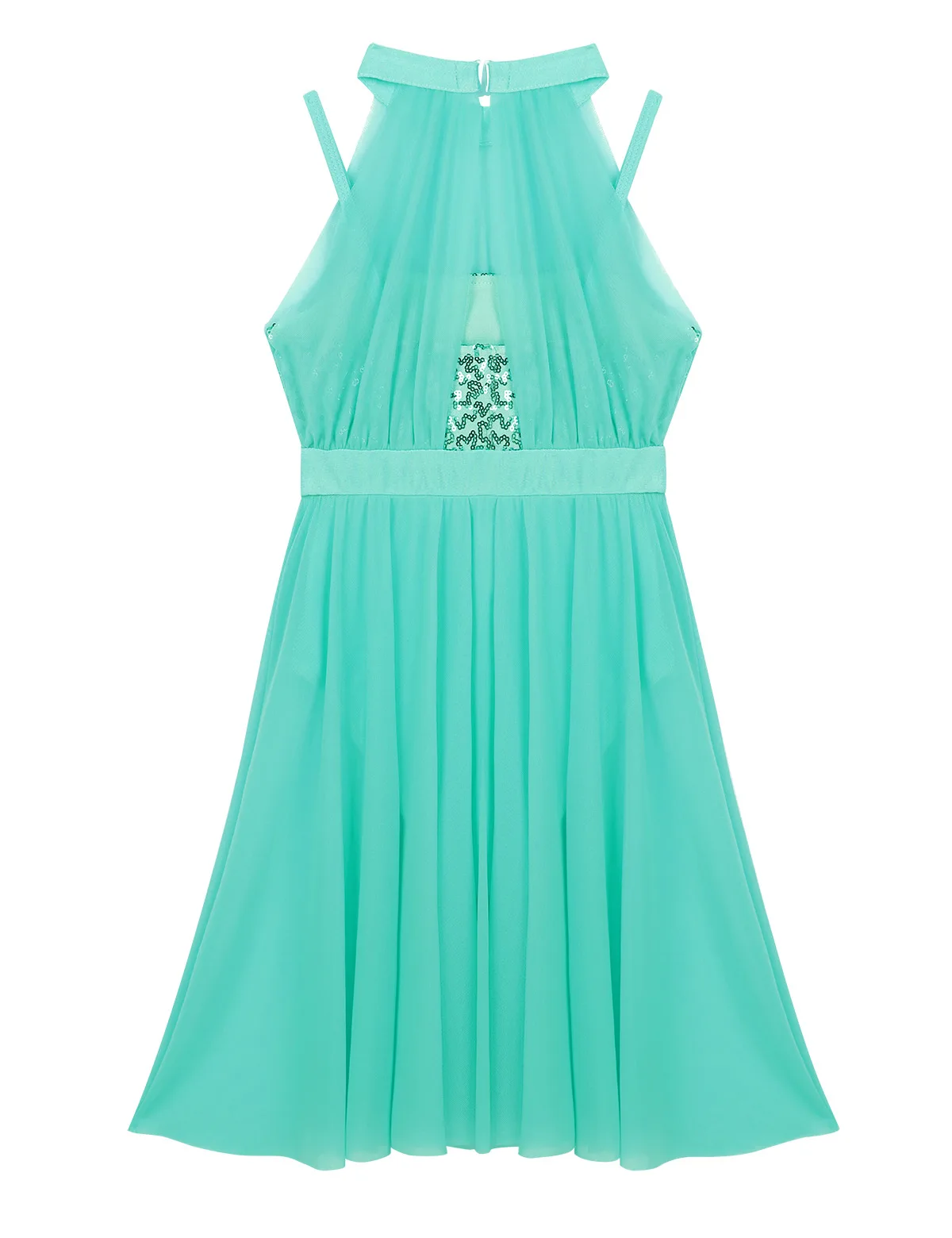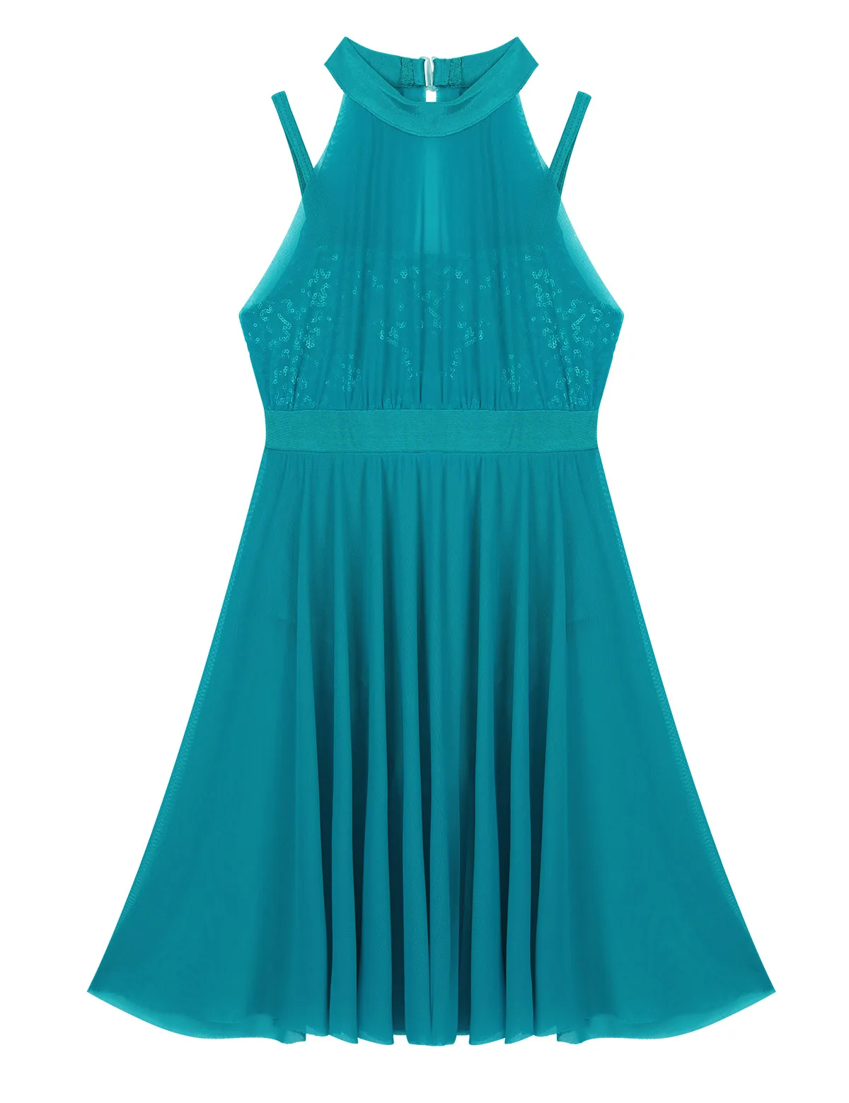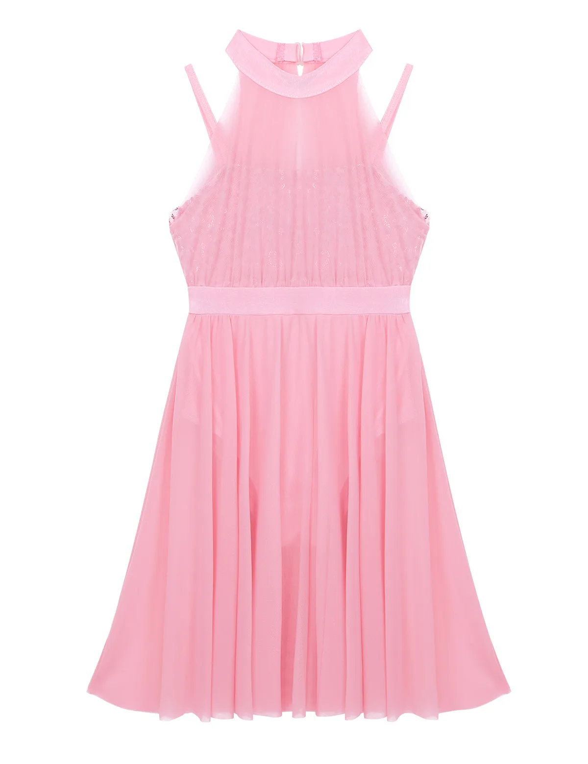 Без рукавов, с ложной горловиной и застежкой, встроенный лиф с блестками на верхней части с регулируемыми бретельками на бретельках.