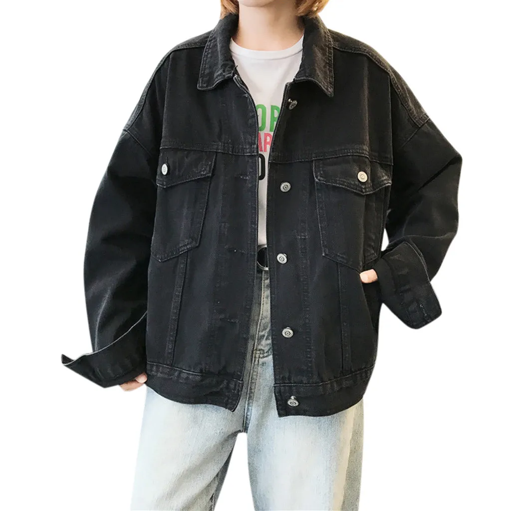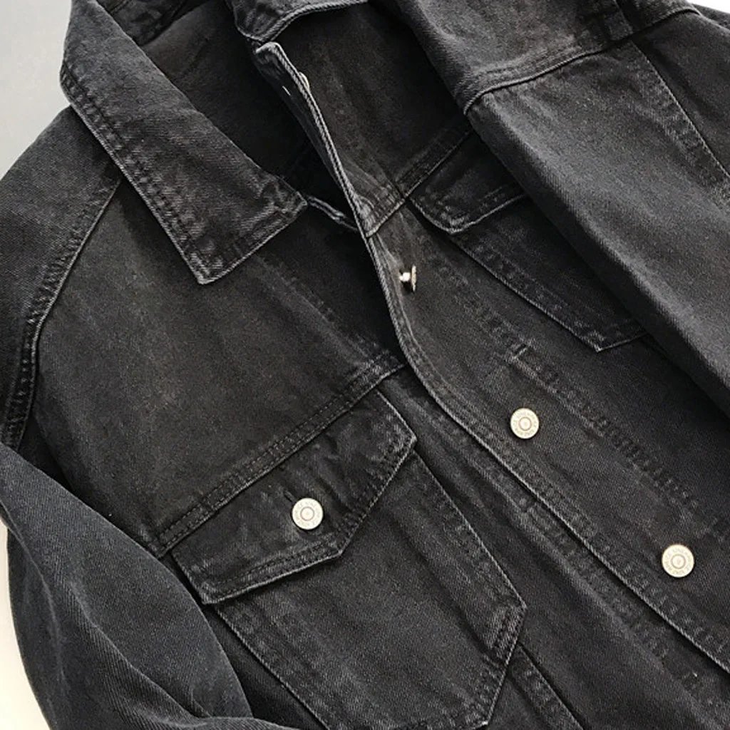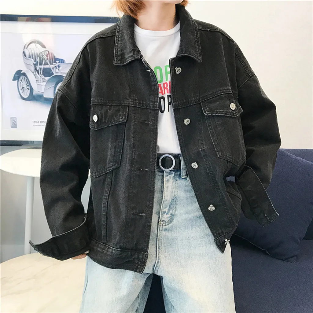 Верхняя одежда, короткая куртка-бомбер, женская Свободная джинсовая куртка с длинным рукавом, ретро ковбойская джинсовая свободная повседневная куртка, джинсовая куртка