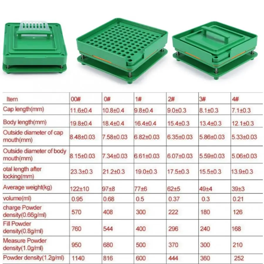 Предназначен для решения проблемы наполнения капсул, таких как маленькая Пакетная обработка, производство, самодельные капсулы. Это применимо для небольших фабрик, аптек, примерных комнат, лаборатории, отдела фармацевтической подготовки в больнице, семье и так далее. Он включает в себя выравнивающую пластину, силовую прессованную пластину, пластину корпуса, среднюю пластину, колпачковую пластину, распределитель мощности и ручку.