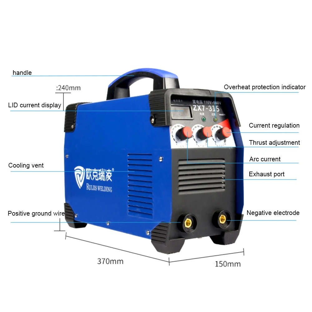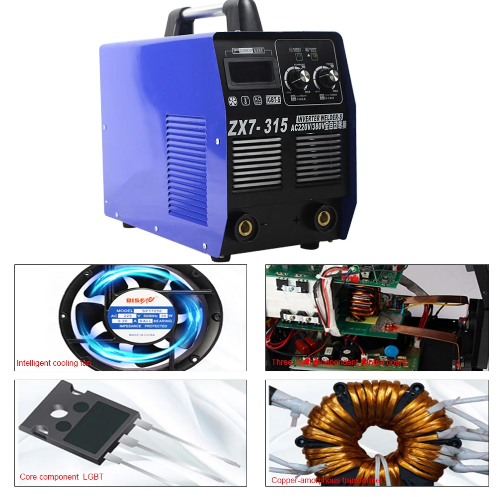 (1)Поддержка 220 В/380 В двойного напряжения, ток может быть 30-315A плавная регулировка, может удовлетворить различные настройки сварки