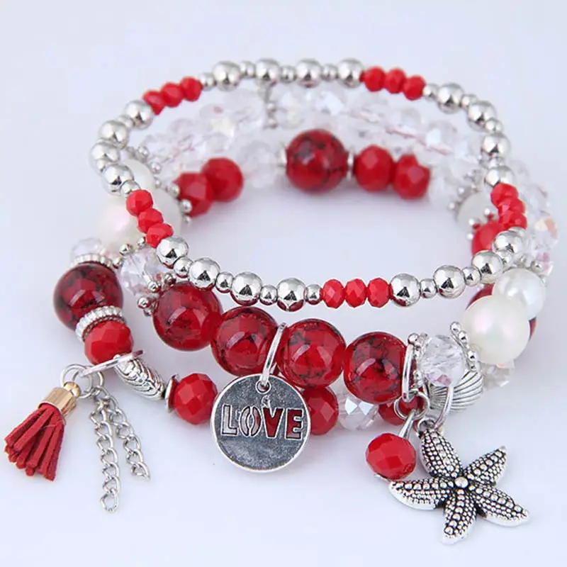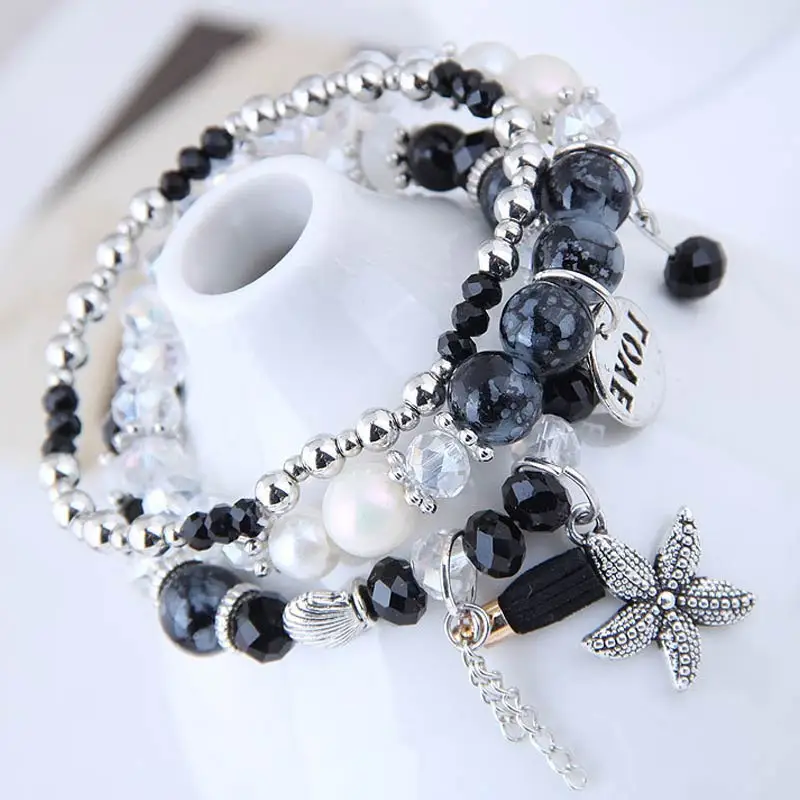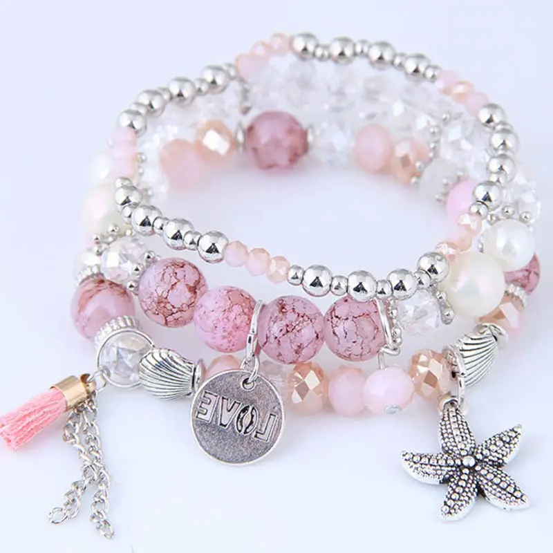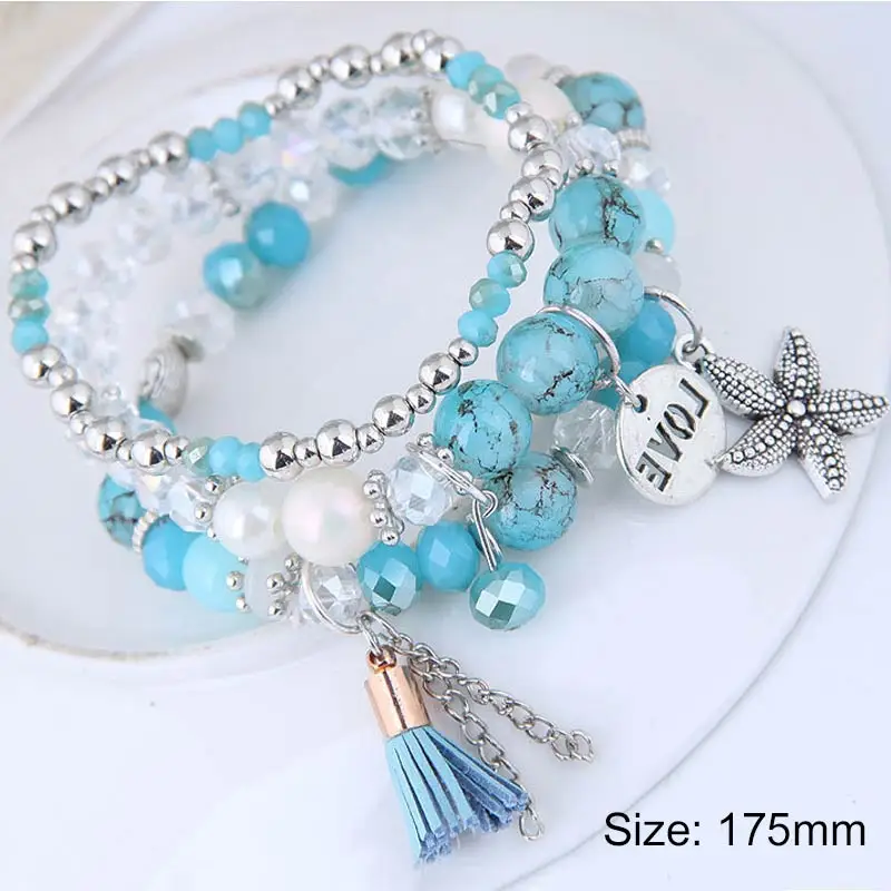 1PC/1Set Starfish Bangles Jewelry Gifts Multilayer Natural Stone Shell Letter Tassel LOVE Vintage Leaf Charms Beads Bracelets | Украшения и