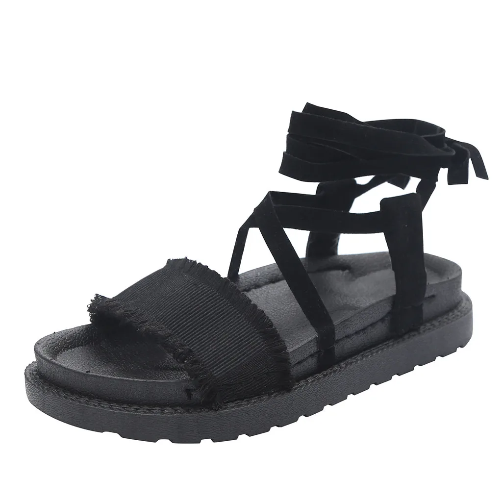 Женские сандалии; повседневная обувь на плоской подошве с открытым носком; римские сандалии на толстой подошве с перекрестными ремешками