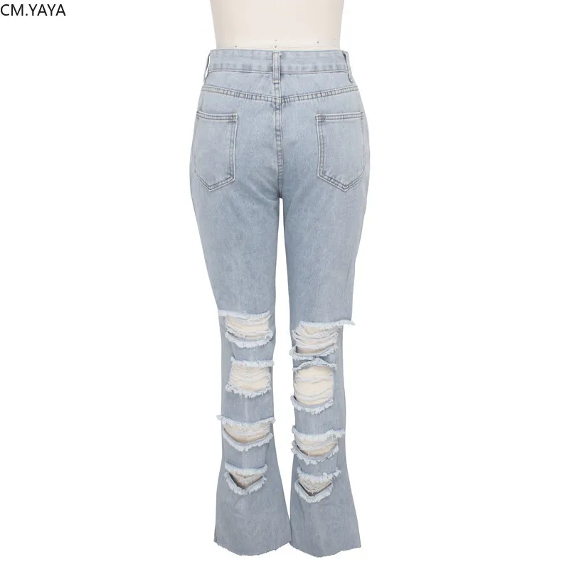 Vetevidi/осенние высококачественные женские рваные расклешенные джинсы эластичные