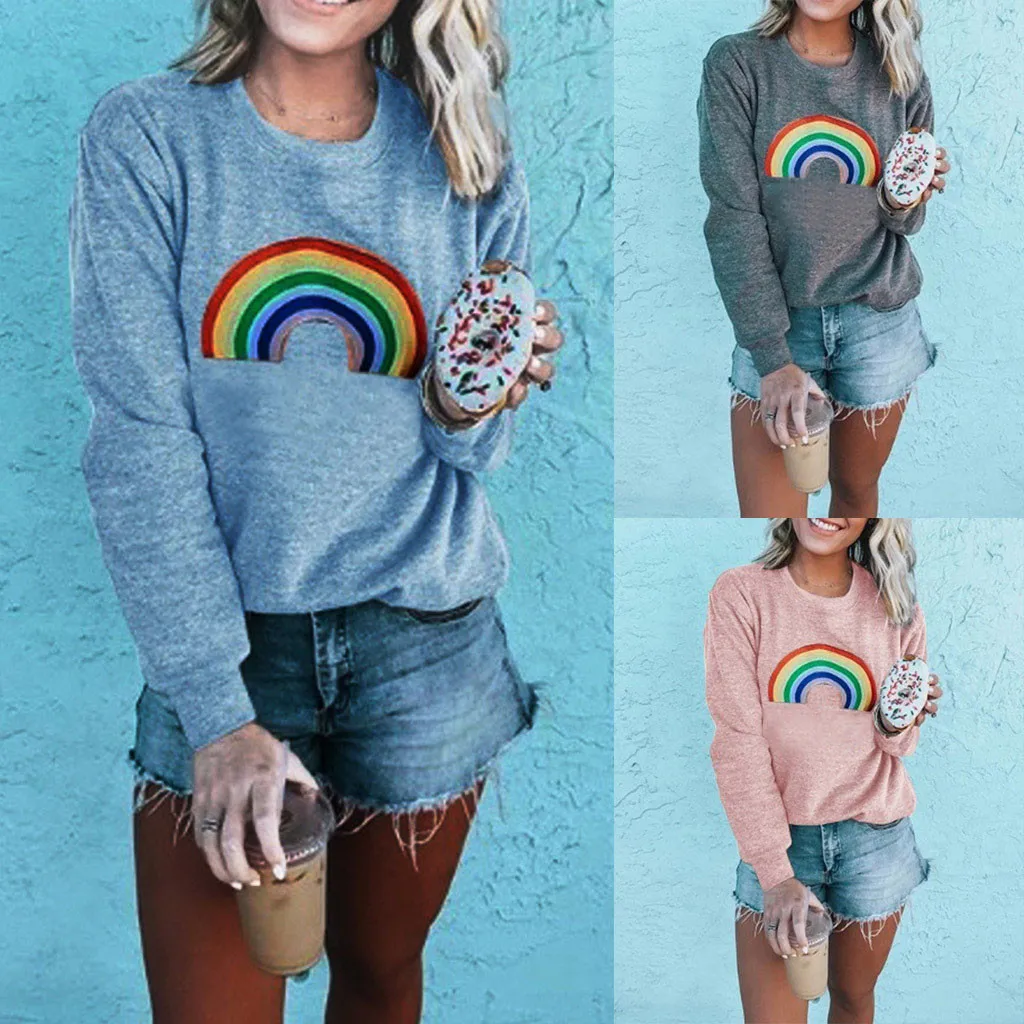 Радужная красочная Мода Плюс Размер Женская толстовка с принтом Толстовка с длинным рукавом и круглым вырезом пуловер Топы Блузка moletom feminino