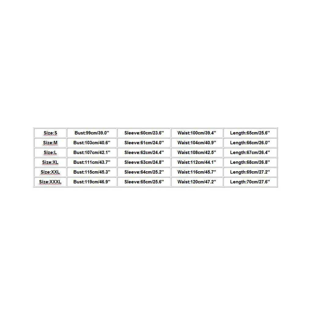 | Размер | Обхват груди | Рукава | Обхват талии | Длина |