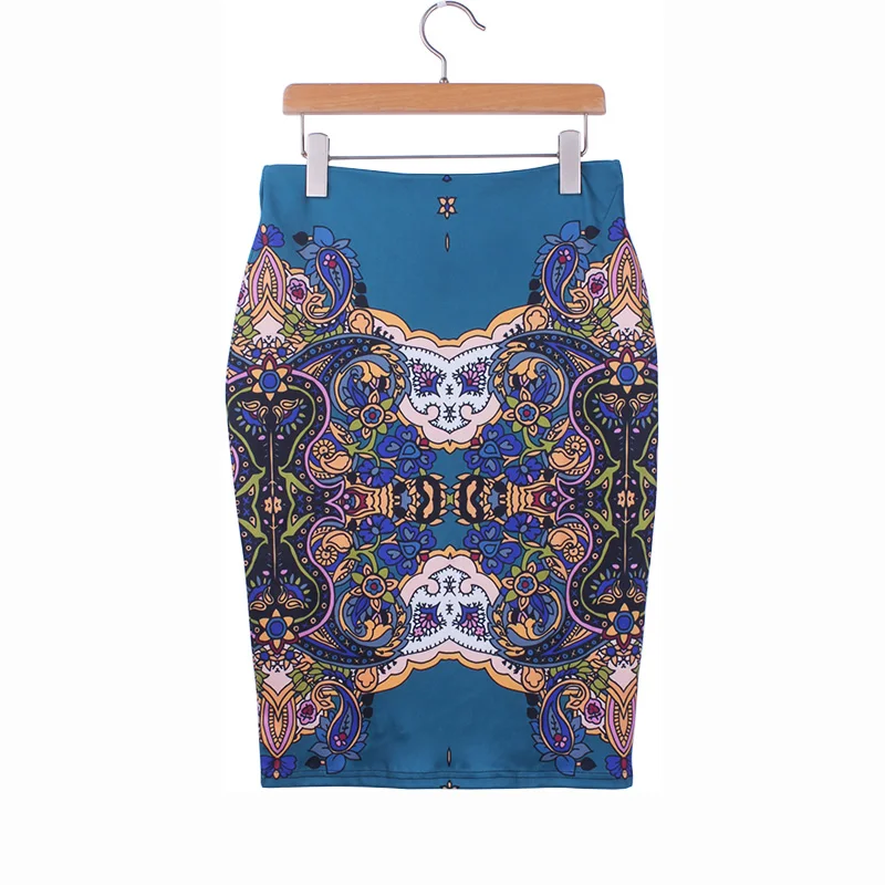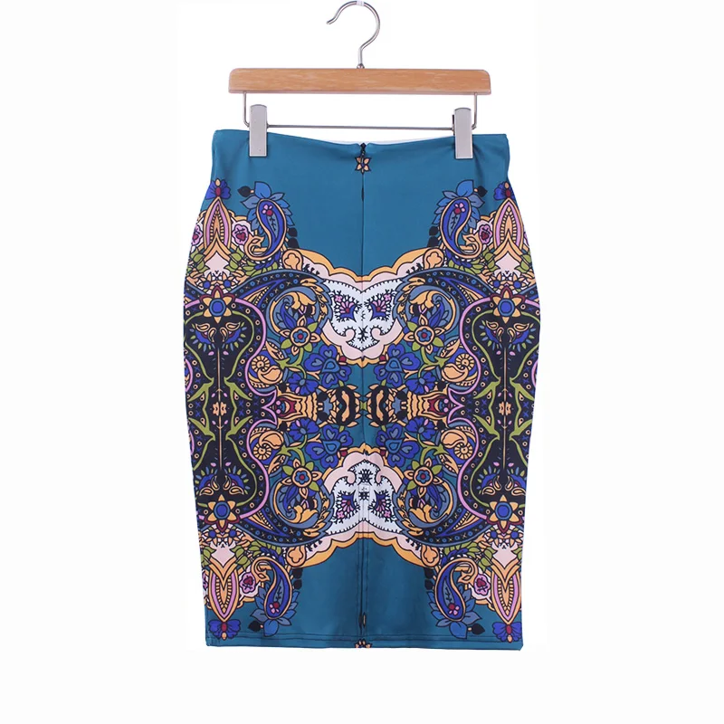 Женская юбка-карандаш Vinatege, S-4XL миди с национальным цветочным принтом для девочек, облегающая юбка размера плюс, 2019