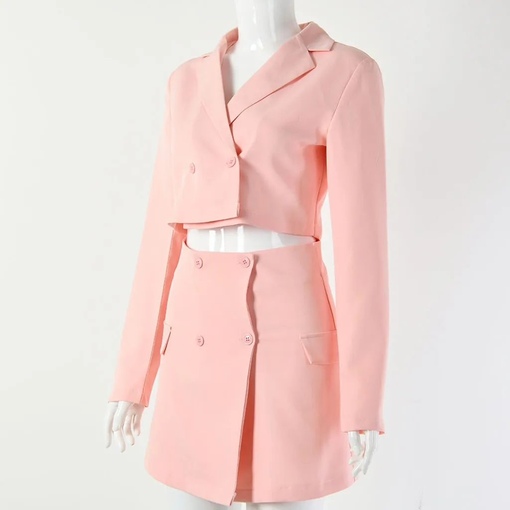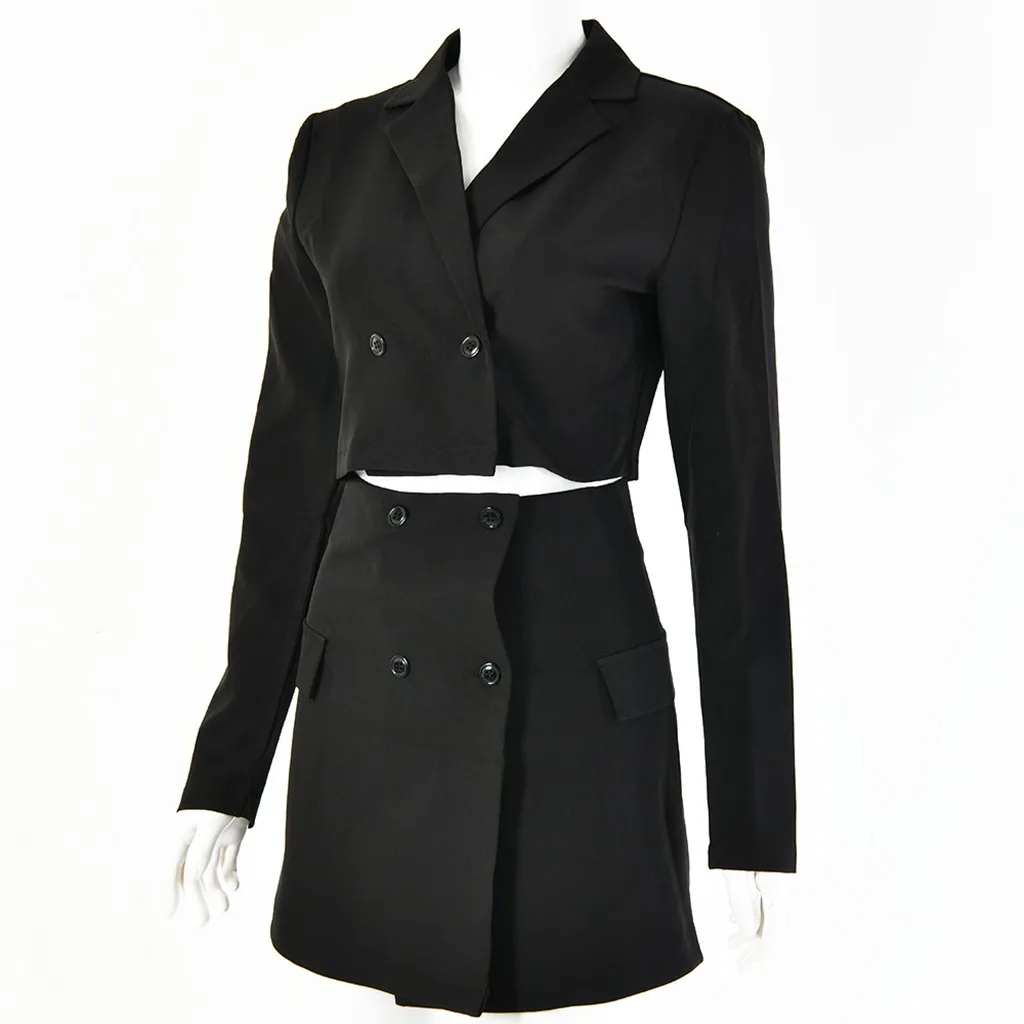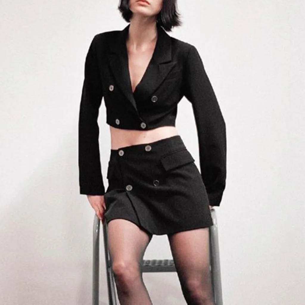 Женский костюм из двух предметов, короткая куртка + пакет, приталенное пальто, юбка с высокой талией