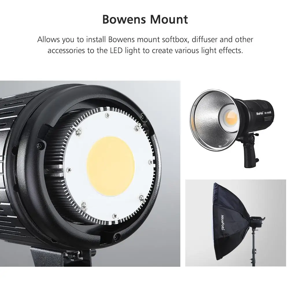"Сделай сам" для наращивания аксессуары:Универсальный Bowens Mount дизайн, вы можете установить ваш креплением Bowens софтбокс, диффузор и другие аксессуары для того, чтобы вы могли, светодиодный светильник для того, чтобы создать различные светильник эффекты.