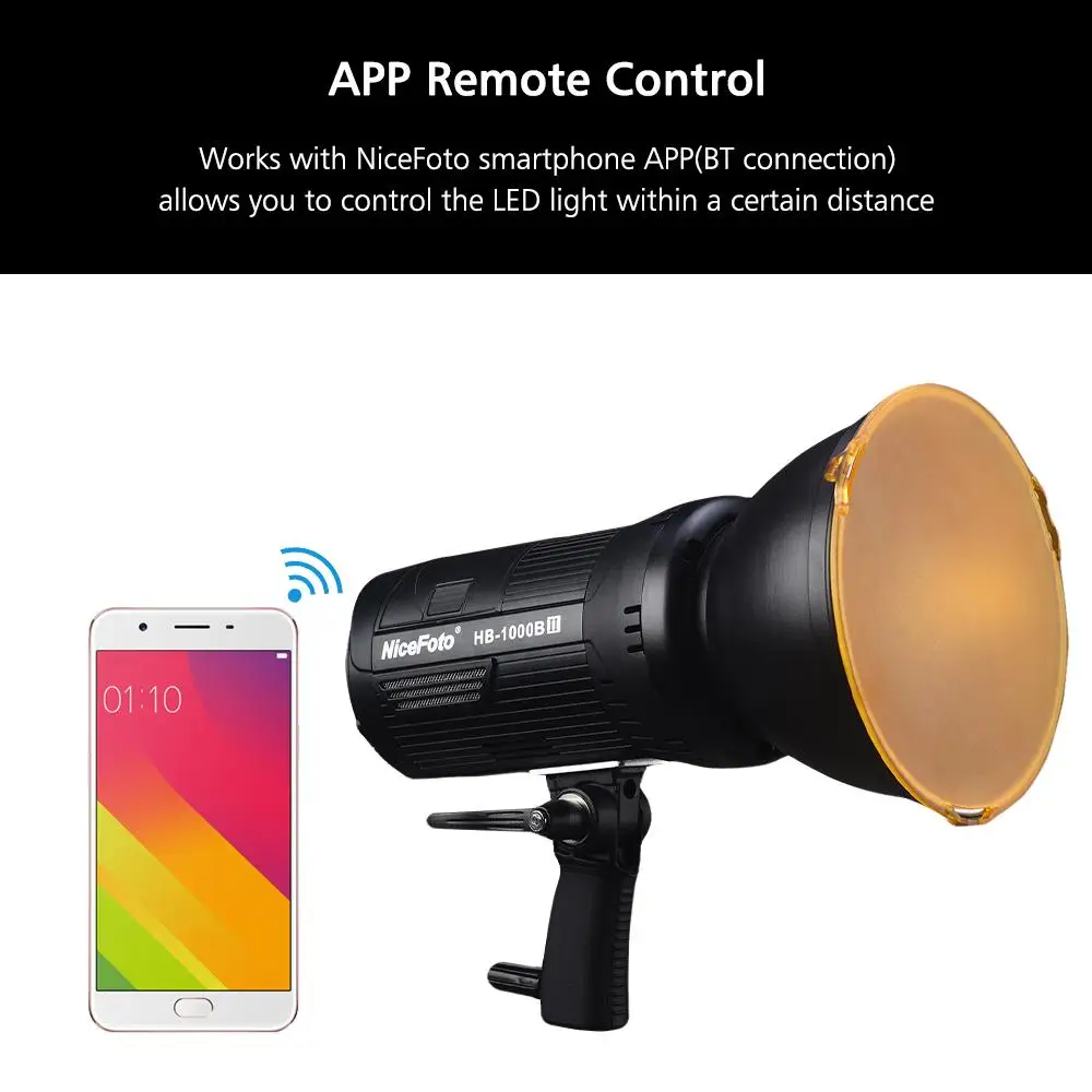 Дистанционное управление через приложение:Светодиодный светильник работает с приложением NiceFoto для смартфона (BT-соединение), что позволяет управлять светодиодный светильник на определенном расстоянии (около 10 м), очень удобно в эксплуатации.