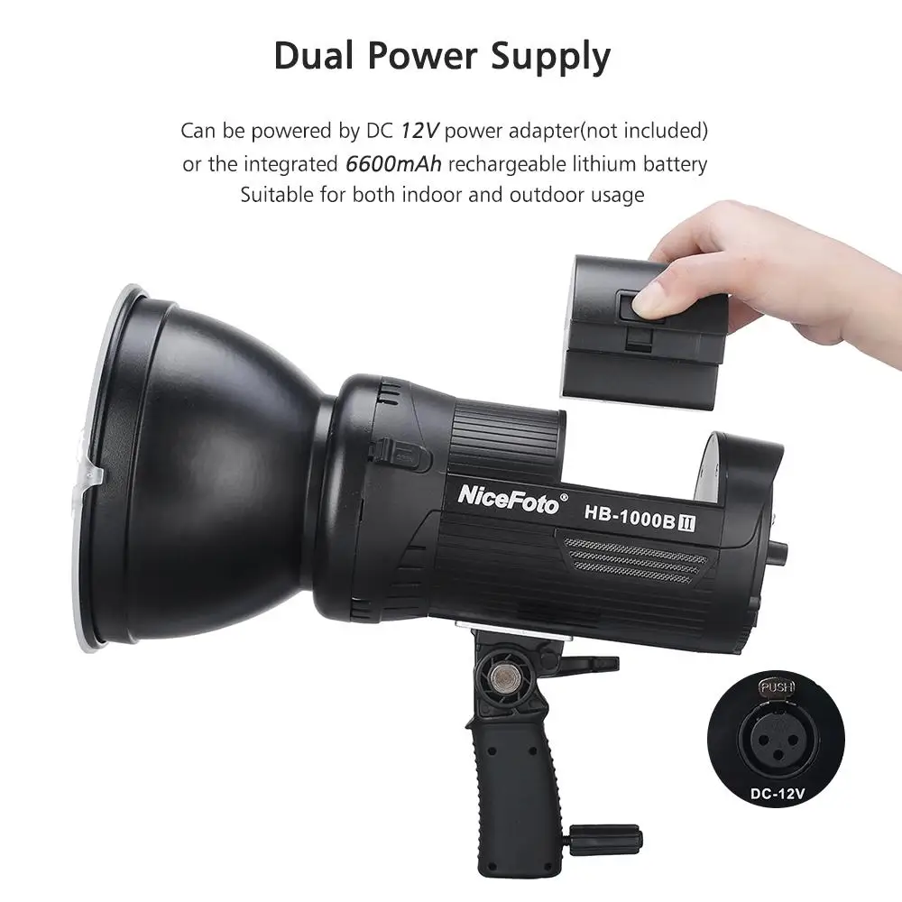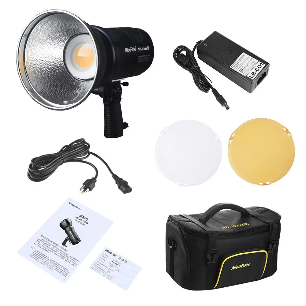NiceFoto HB-1000B II ручной светодиодный видео светильник 100 Вт лампа для фотосъемки 3200K/5600K плавное затемнения CRI95 + поддерживает приложения для дистанционного Управление встроенный Перезаряжаемые литий Батарея с Батарея Зарядное устройство Цвет фильтры сумка для переноски
