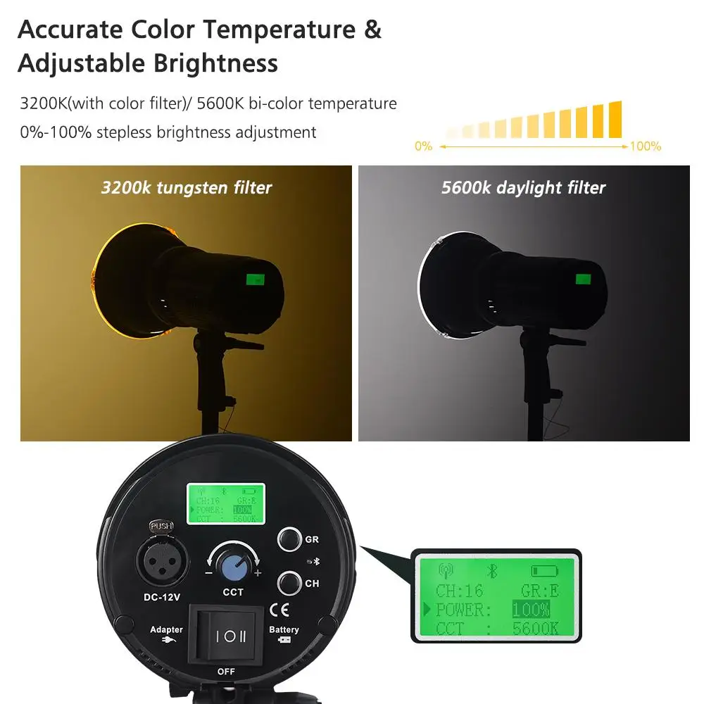 Профессиональный светодиодный светильник для фотографии:3200K (с цветофильтр)/ 5600K bi-Цветовая температура и 0%-100% плавная регулировка яркости, стихийных бедствий и стабильная светильник источник; 95 + высокий индекс цветопередачи, точную цветопередачу.