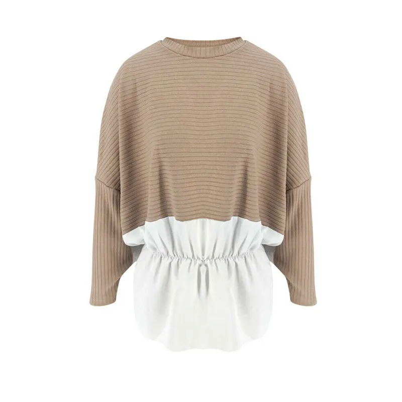Женская трикотажная футболка с длинным рукавом 2019 Повседневная Свободная зимняя теплая Повседневная Джемпер Пуловер Топы пэчворк горячая Распродажа женские футболки!