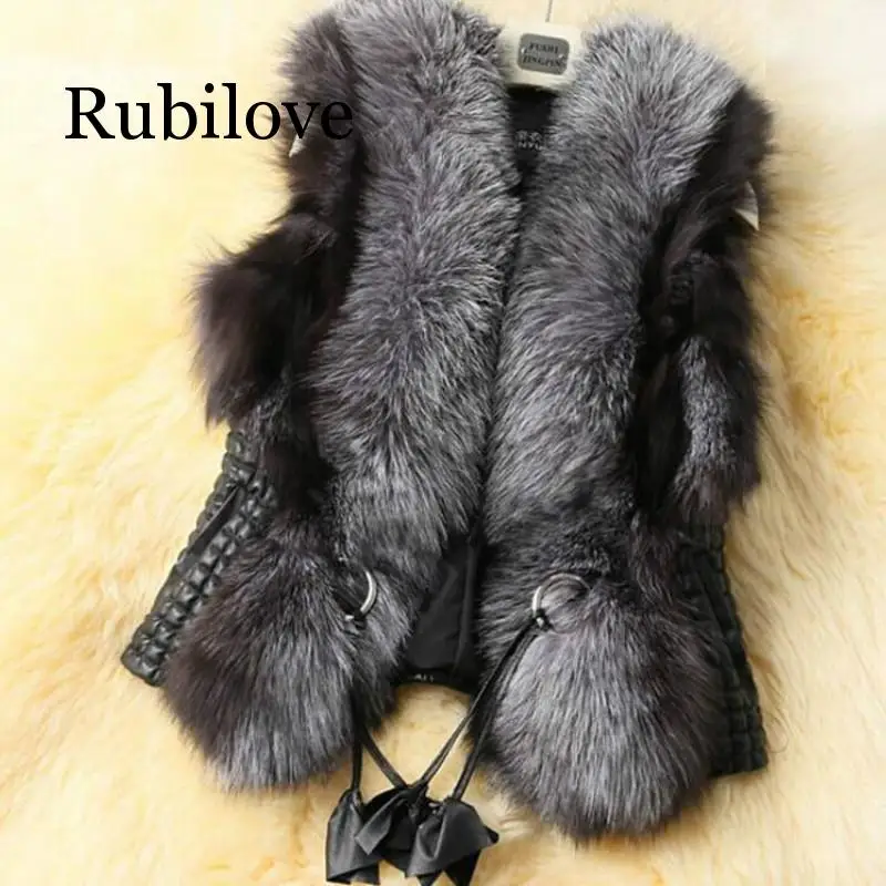 Женская Повседневная куртка из искусственного меха без рукавов теплая пушистая