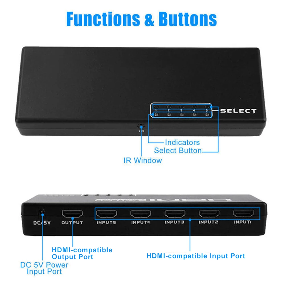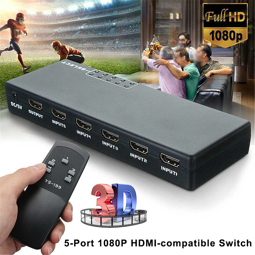 3D 1080p 5 портов 4K HDMI-совместимый Переключатель сплиттер концентратор адаптер удаленный HDMI-совместимый переключатель сплиттер селектор коробка концентратор HDMI-совместимый