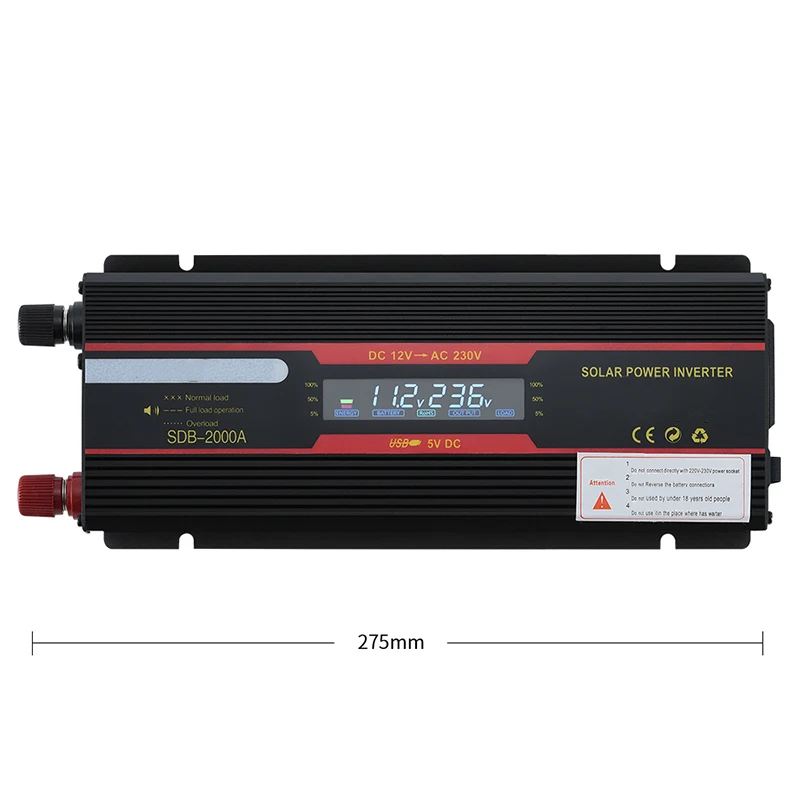 Инвертор может преобразовывать DC12 / 24V в AC 110V/220V. 12 В обычно для автомобилей, 24 В для грузовиков. Встроенный вентилятор охлаждения с низким уровнем шума.