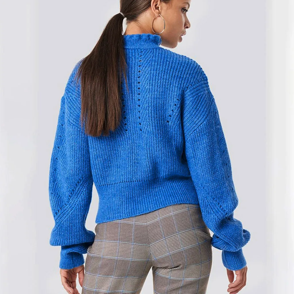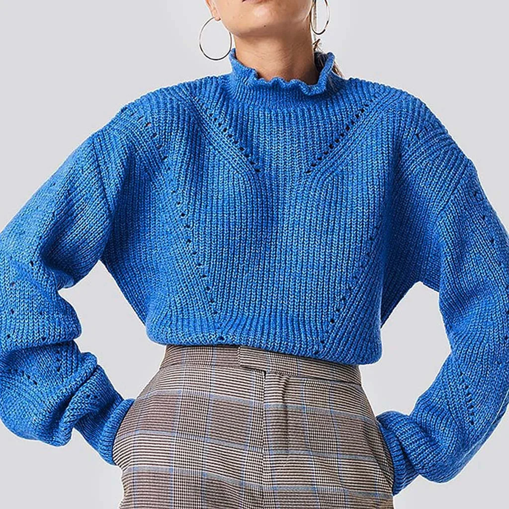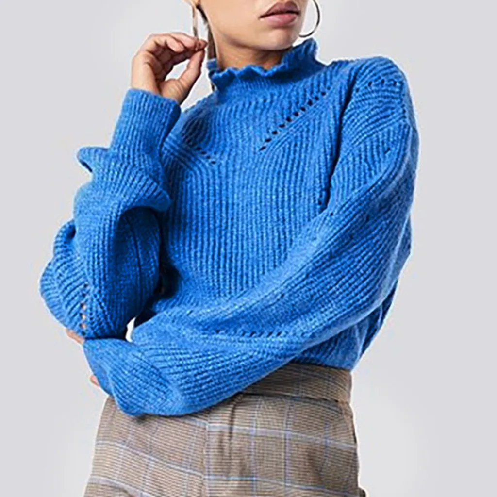 Женский зимний модный свитер, водолазка, однотонный топ с длинным рукавом