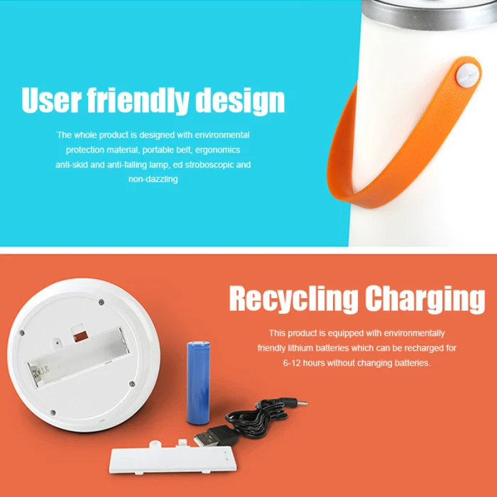 Портативный светильник светодиодный золотой для кемпинга USB перезаряжаемый 300LM3W
