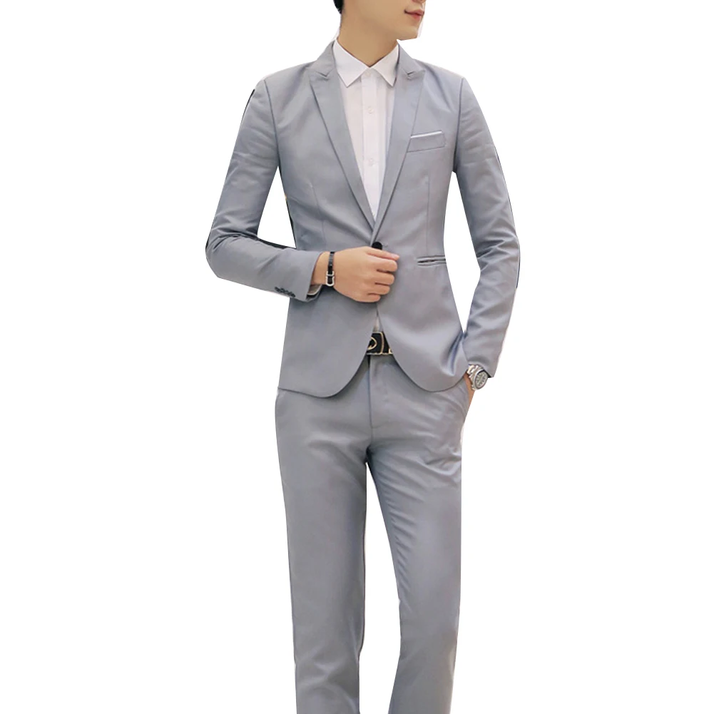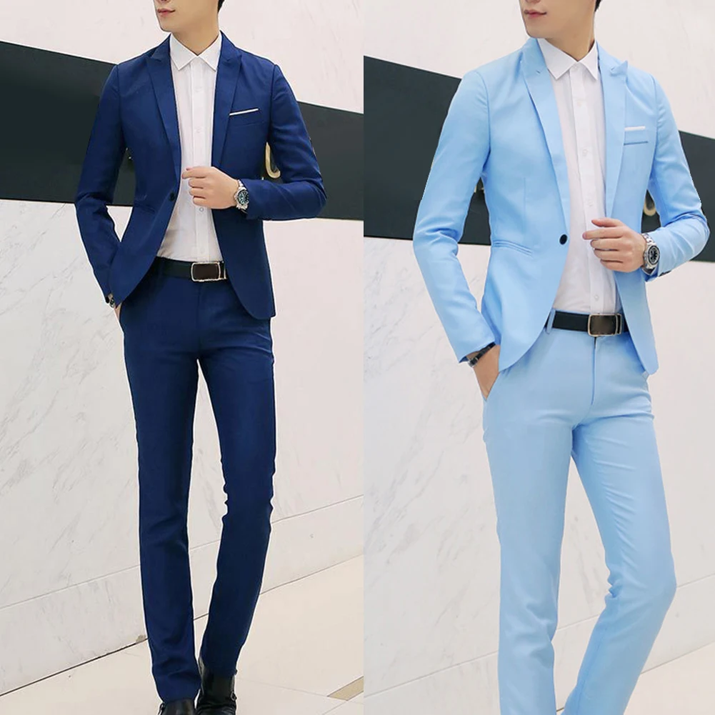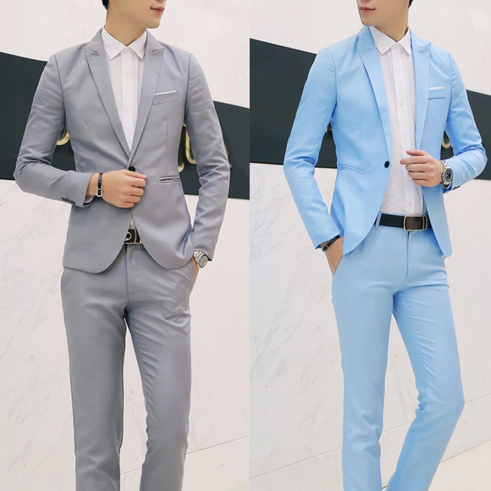 2 шт. модный мужской однотонный блейзер с отложным воротником и длинными рукавами, приталенный костюм со штанами