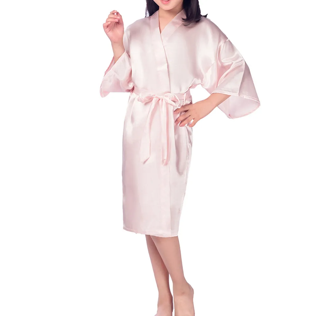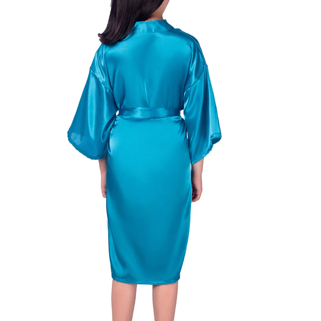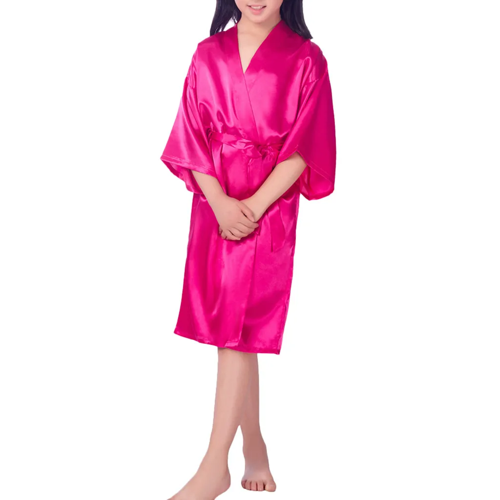 4-14 код, Детская Однотонная ночная рубашка, нижнее белье-кимоно, халаты, пижамы, нижнее белье